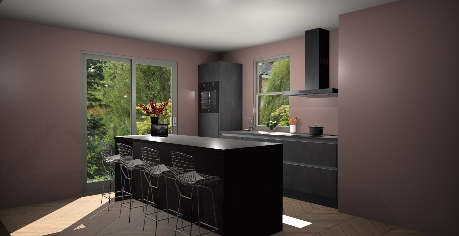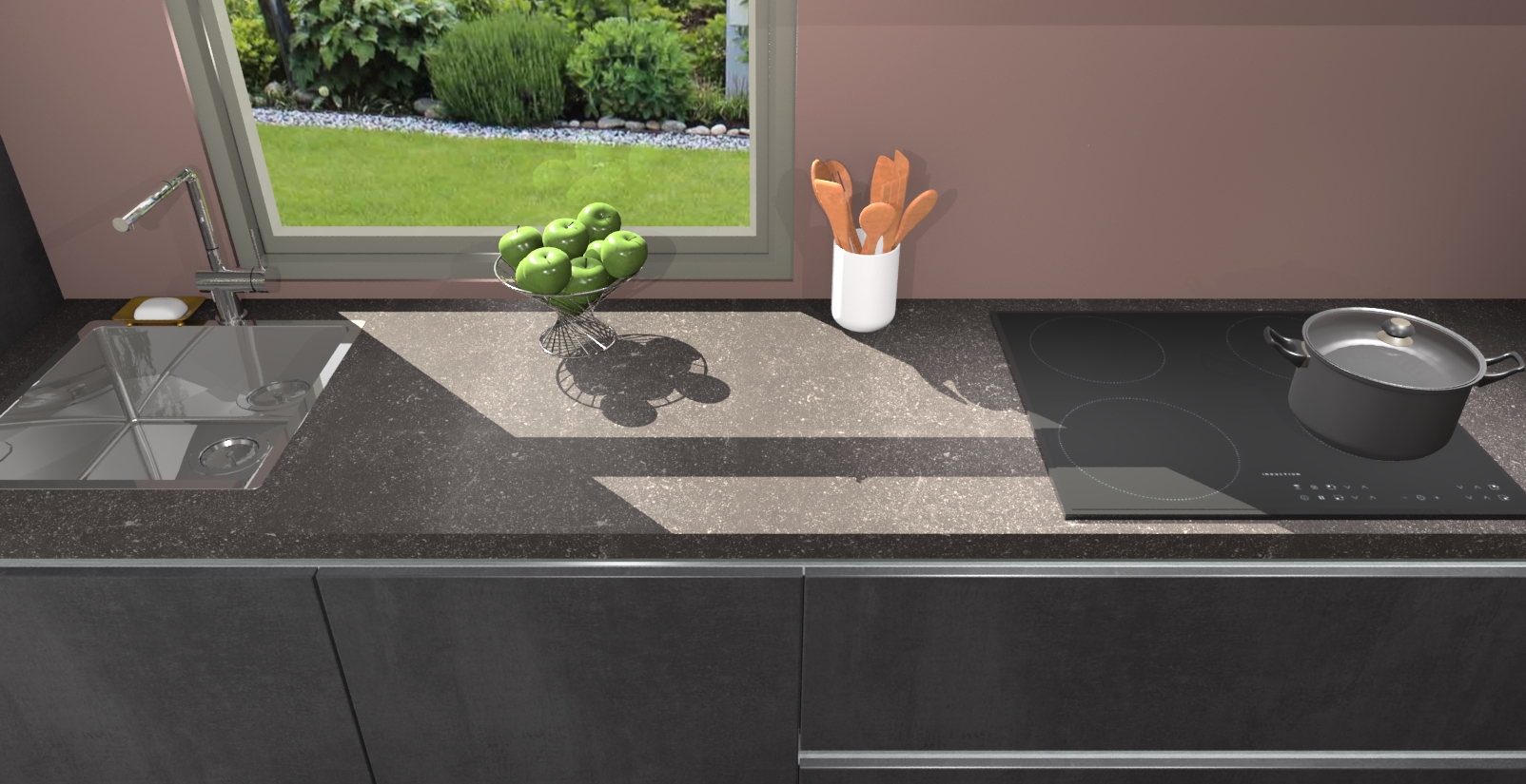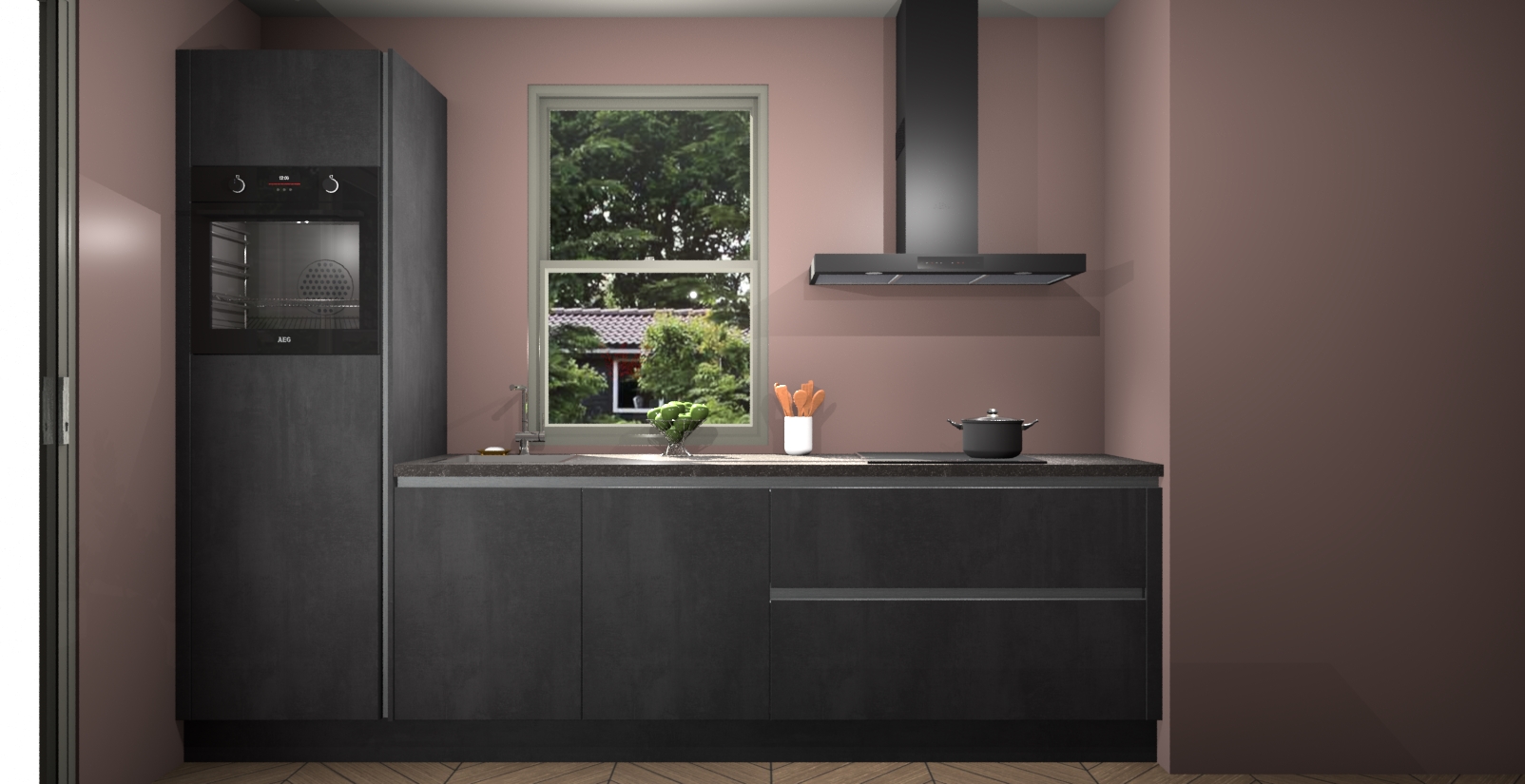 Een stijlvolle en praktische keuken als deze mag gezien worden. Dankzij de prachtige Beton Zwarte afwerking wordt de keuken gemakkelijk het middelpunt van uw huis - hij ziet er geweldig uit onder allerlei lichtomstandigheden, van dag tot nacht!