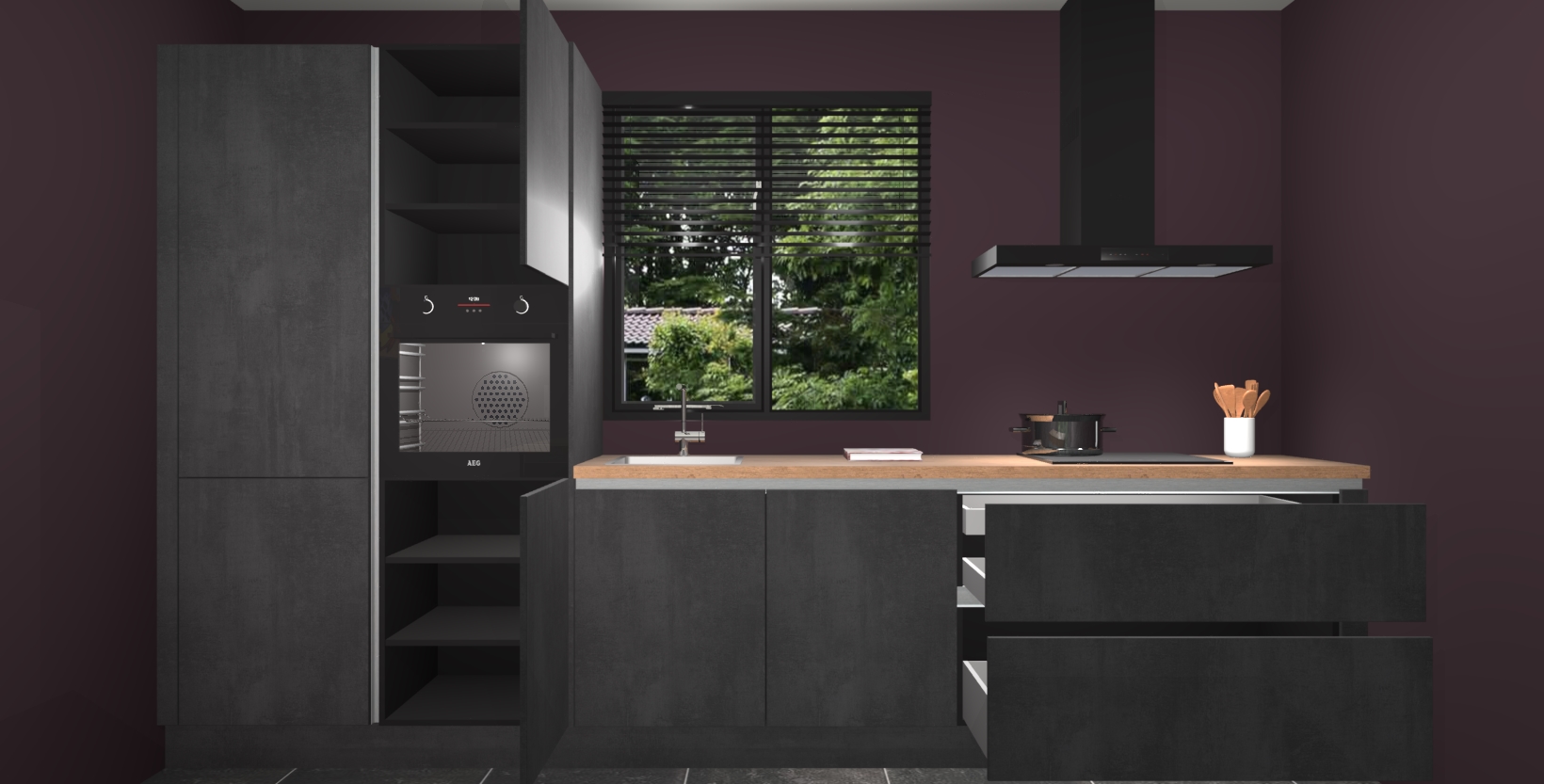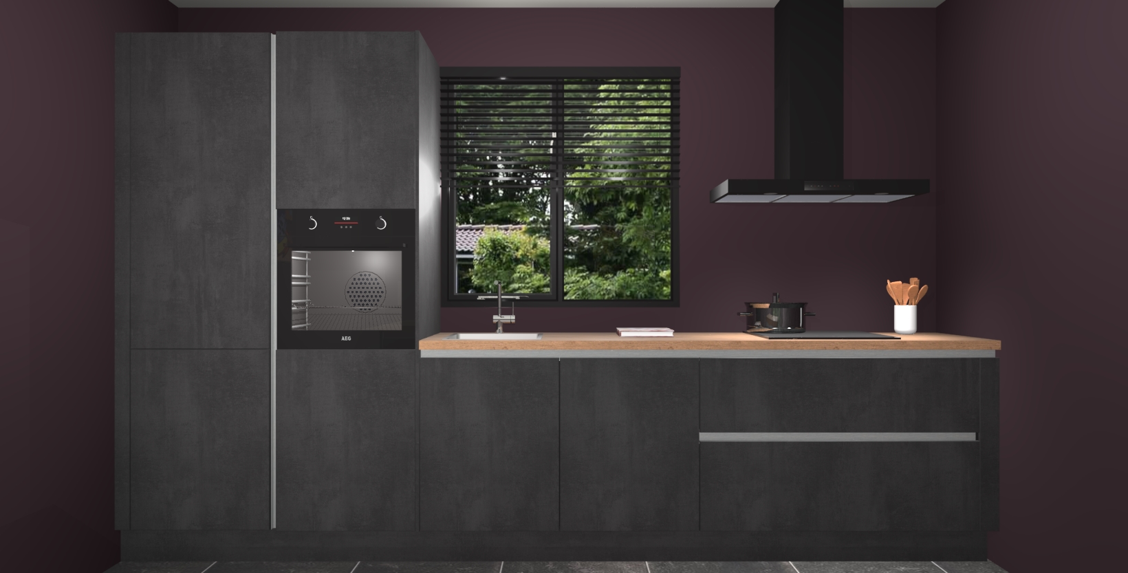 Maak kennis met de beton zwarte keuken Bonaire: de perfecte balans tussen tijdloos en modern. Met voldoende opbergruimte zal deze keuken de afgunst van uw vrienden en familie zijn, terwijl uw leven moeiteloos georganiseerd en rommelvrij blijft.