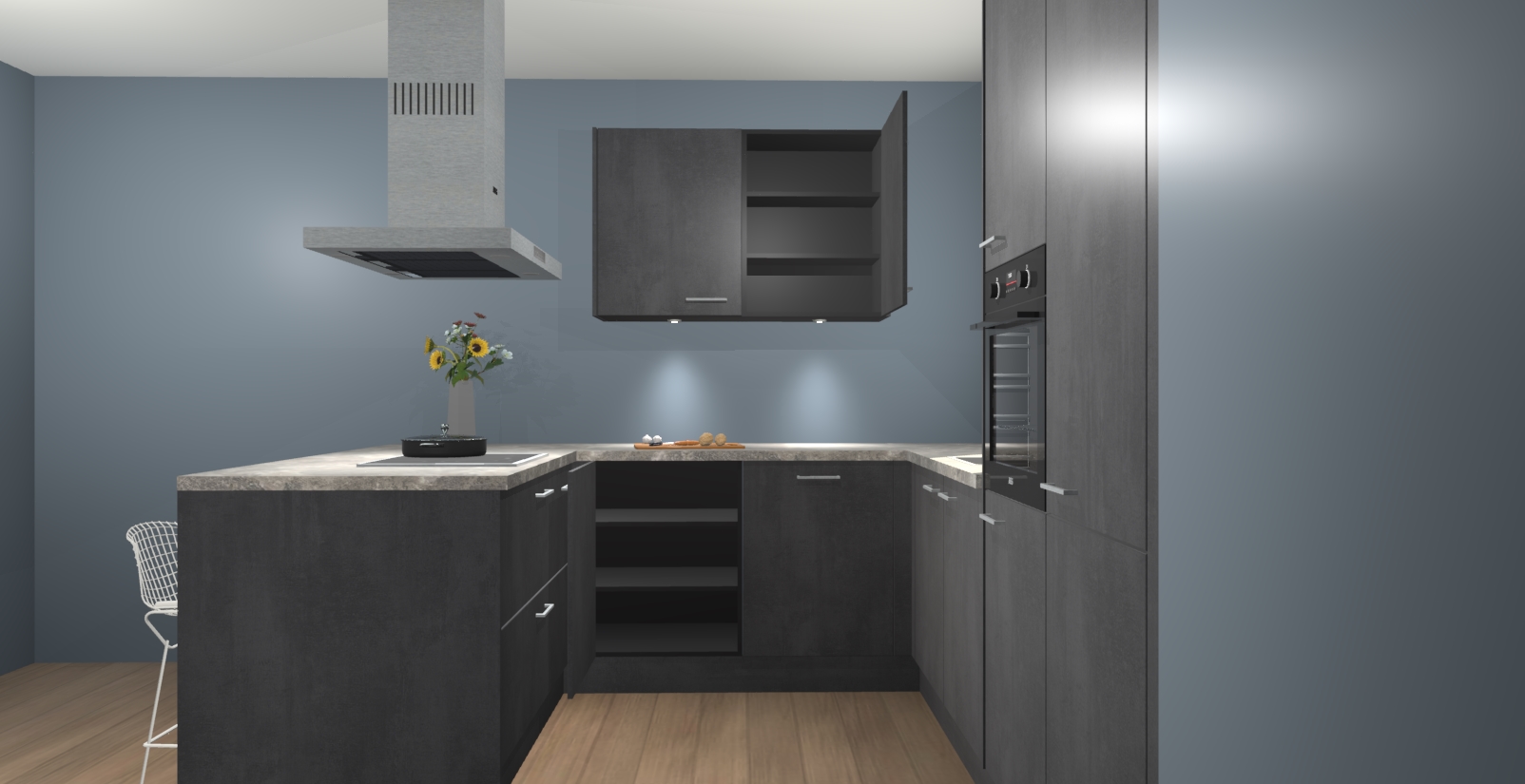 In deze box zijn alle kleuren verzameld van de deuren en werkbladen. Vraag de gratis kleurenbox aan en kijk thuis rustig verder!