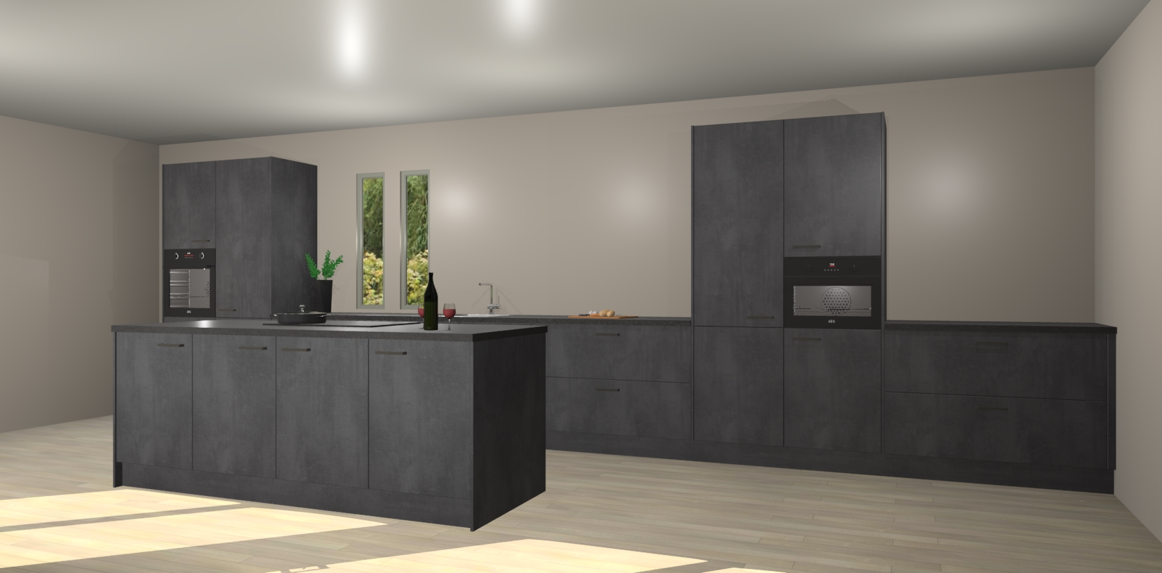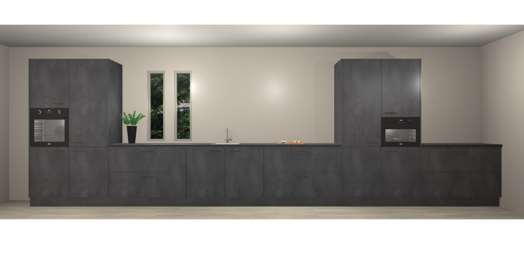 De perfecte toevoeging aan uw droomkeuken! De beton zwarte keuken Krakor is een opmerkelijke en verfijnde keuken. Hij is ontworpen met moderne lijnen en tijdloze schoonheid die garant staan voor een luxe uitstraling. Deze uiterst functionele en mooie keuken heeft een reeks verbazingwekkende functies: de overvloedige opbergruimte bevat soft close deuren, terwijl vijf inbouwapparaten zijn inbegrepen in de vaste lage prijs. Beter nog, uw beton zwarte keuken Krakor bestellen duurt slechts 7 weken met levering van voorgemonteerde kasten.