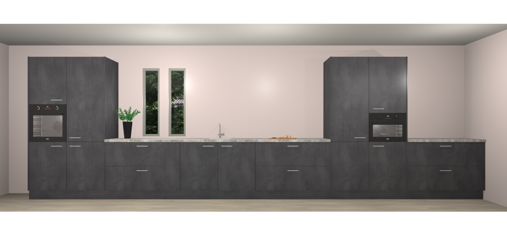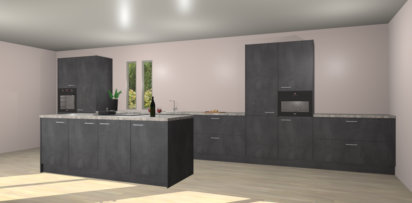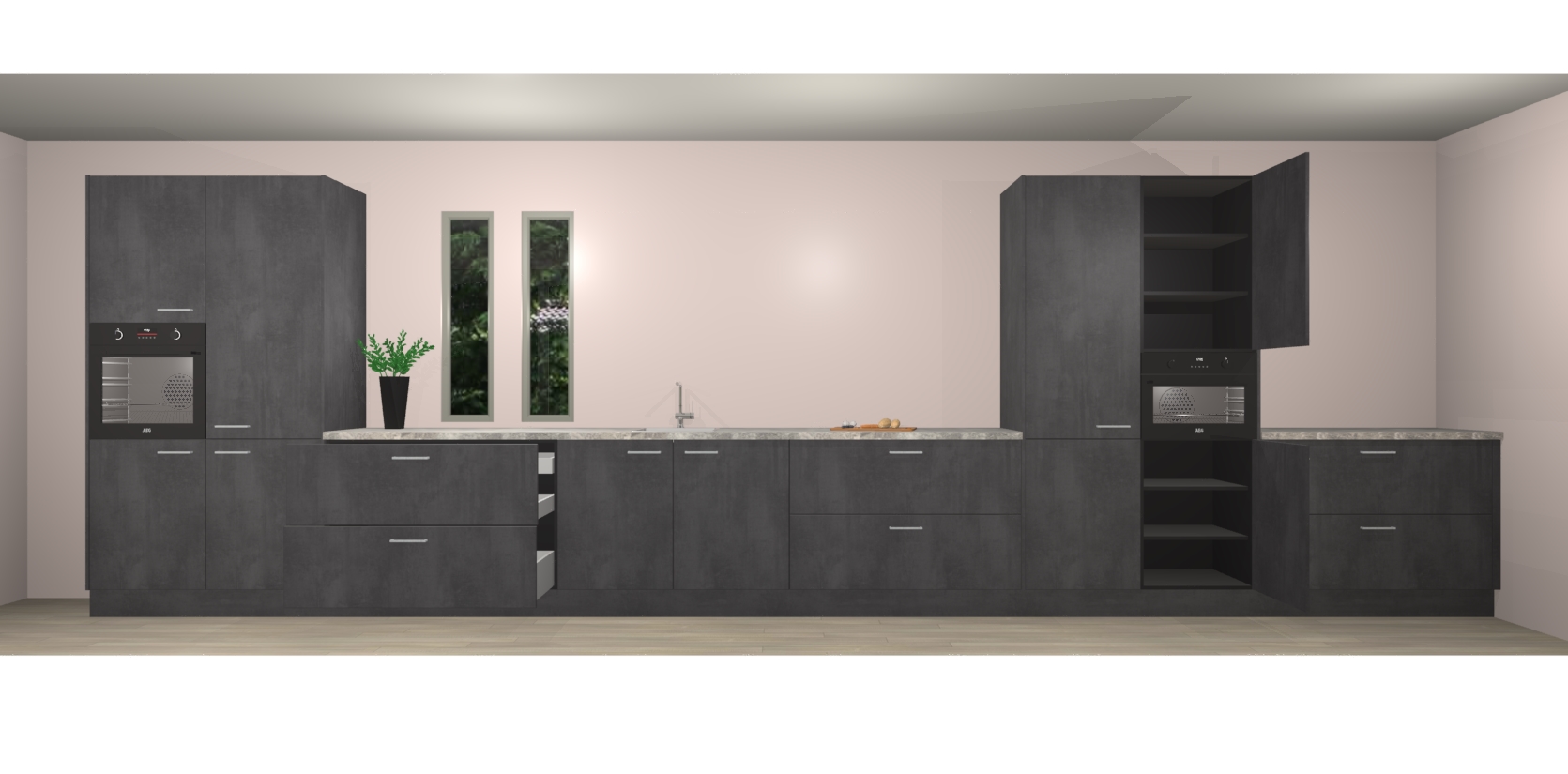 De perfecte toevoeging aan uw droomkeuken! De beton zwarte keuken Krakor is een opmerkelijke en verfijnde keuken. Hij is ontworpen met moderne lijnen en tijdloze schoonheid die garant staan voor een luxe uitstraling. Deze uiterst functionele en mooie keuken heeft een reeks verbazingwekkende functies: de overvloedige opbergruimte bevat soft close deuren, terwijl vijf inbouwapparaten zijn inbegrepen in de vaste lage prijs. Beter nog, uw beton zwarte keuken Krakor bestellen duurt slechts 7 weken met levering van voorgemonteerde kasten.