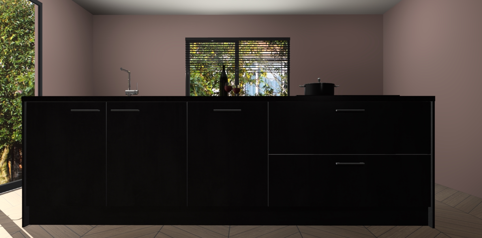Sfeervol luxe met de Beton Zwarte keuken Lodz! Reken op een moderne look die met zijn schitterende Beton Zwarte kleur en het prachtige keukeneiland echt zal schitteren in uw keuken. Met veel verschillende berging opties zult u alles kunnen opbergen wat u nodig heeft in deze hoopvolle ruimte, waaronder ook soft-close vergrendeling.