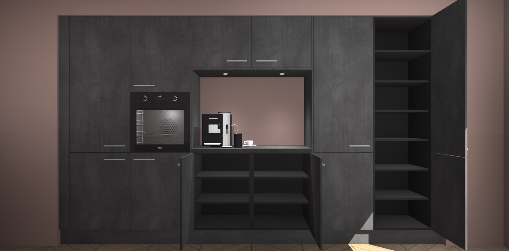De Beton Zwarte keuken Lodz wordt geleverd met een set van 5 ingebouwde apparaten: Een oven, inductiekookplaat, afzuigkap, vaatwasser en koelkast. Deze kunnen gemakkelijk worden opgewaardeerd naar AEG. Met de gegarandeerde lage prijs en de snelle levering van 7 weken kan u er op rekenen dat de Beton Zwarte keuken Lodz zo snel mogelijk uw huis bereikt!
