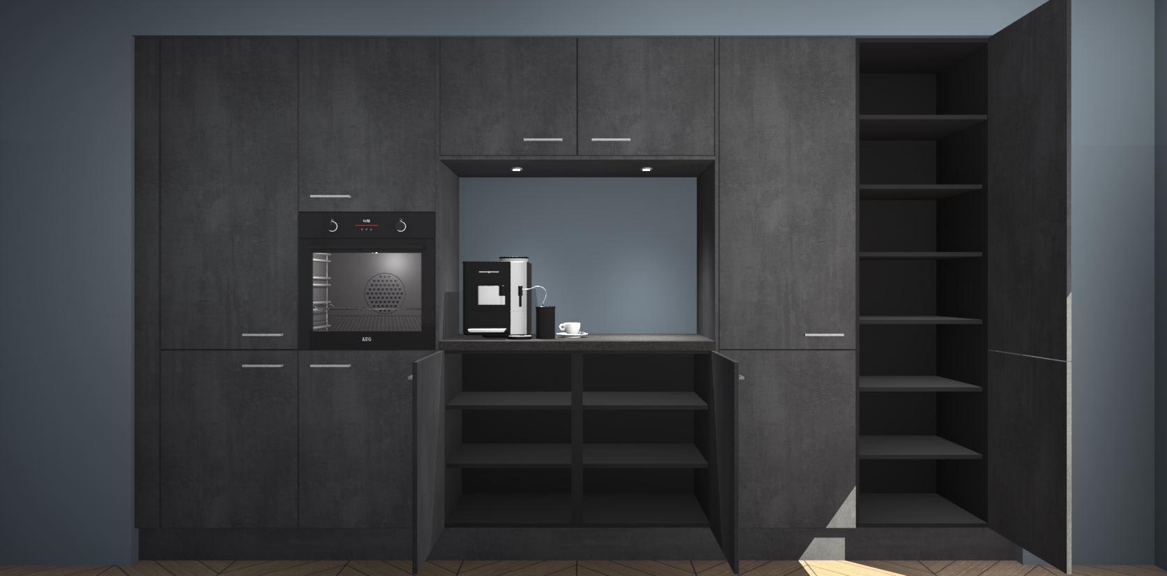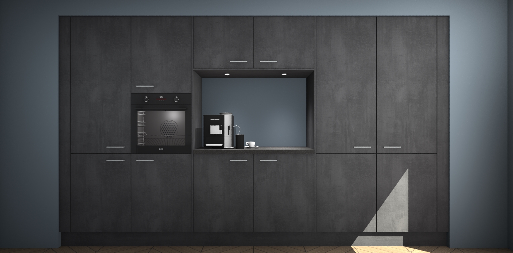 De Beton Zwarte keuken Lodz wordt geleverd met een set van 5 ingebouwde apparaten: Een oven, inductiekookplaat, afzuigkap, vaatwasser en koelkast. Deze kunnen gemakkelijk worden opgewaardeerd naar AEG. Met de gegarandeerde lage prijs en de snelle levering van 7 weken kan u er op rekenen dat de Beton Zwarte keuken Lodz zo snel mogelijk uw huis bereikt!