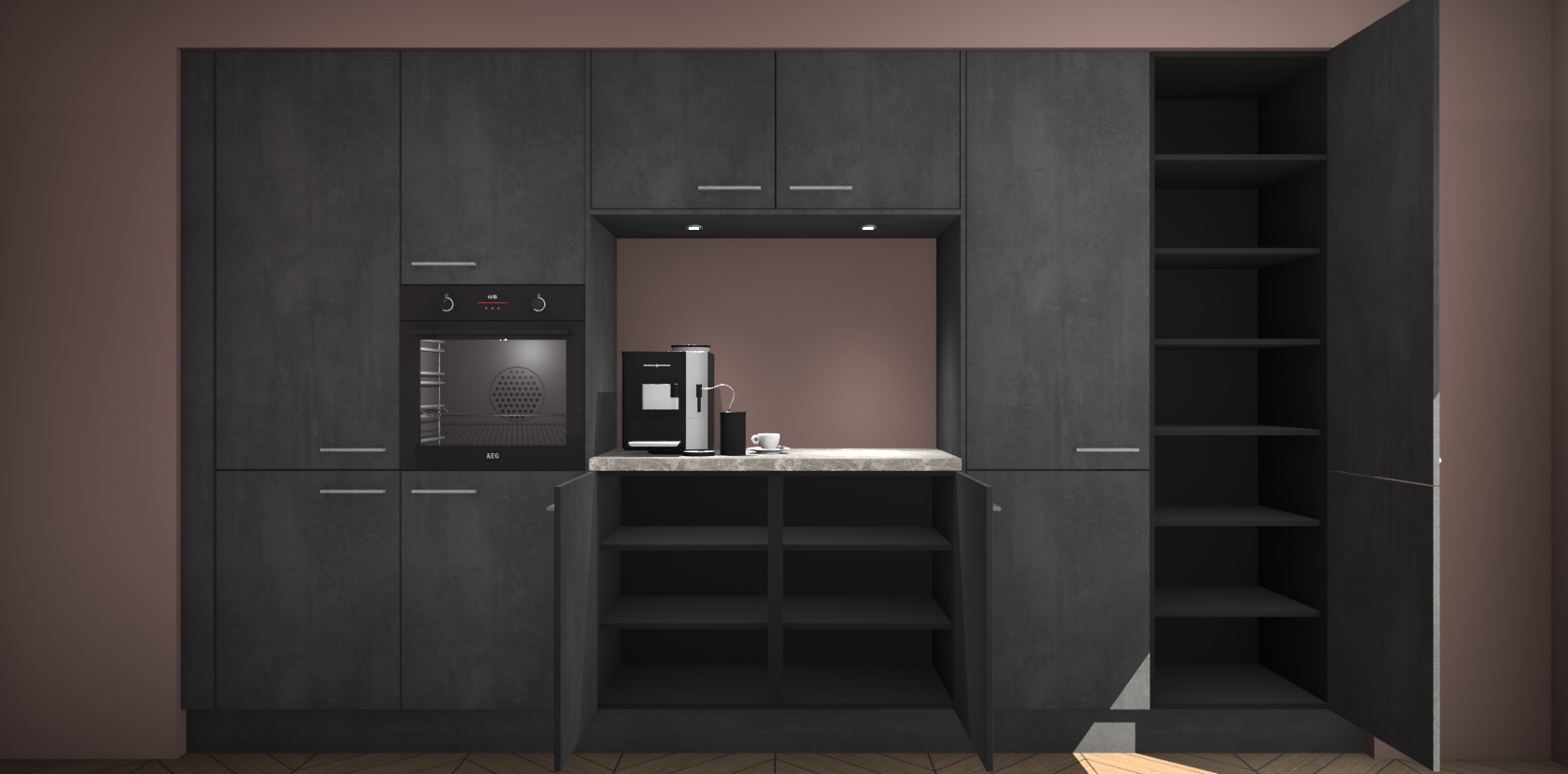 De Beton Zwarte keuken Lodz wordt geleverd met een set van 5 ingebouwde apparaten: Een oven, inductiekookplaat, afzuigkap, vaatwasser en koelkast. Deze kunnen gemakkelijk worden opgewaardeerd naar AEG. Met de gegarandeerde lage prijs en de snelle levering van 7 weken kan u er op rekenen dat de Beton Zwarte keuken Lodz zo snel mogelijk uw huis bereikt!