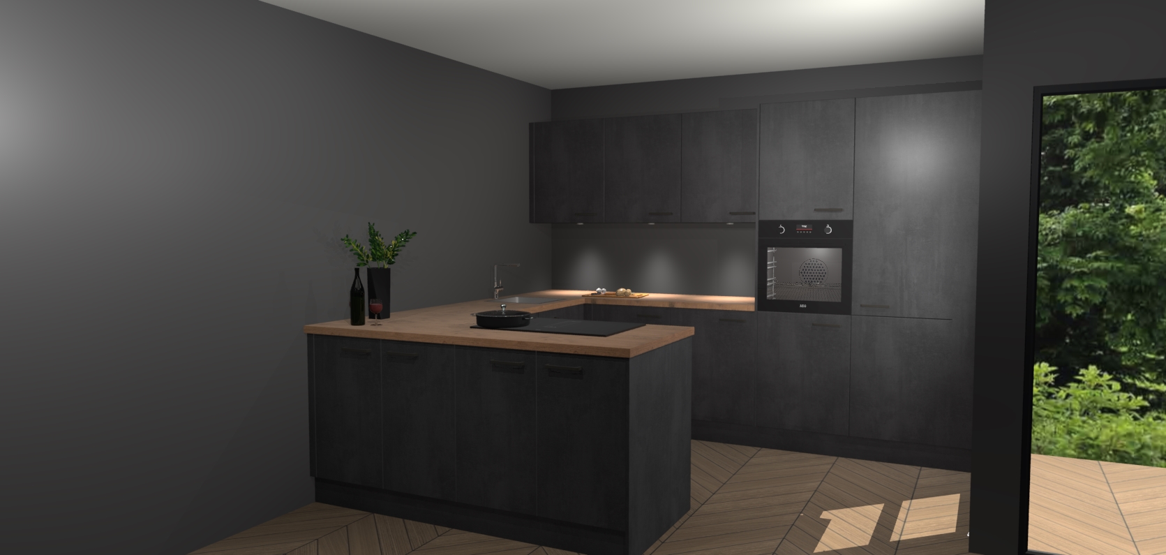 De perfecte toevoeging aan uw droomkeuken! De beton zwarte keuken Rosario is een opmerkelijke en verfijnde keuken. Hij is ontworpen met moderne lijnen en tijdloze schoonheid die garant staan voor een luxe uitstraling. Deze uiterst functionele en mooie keuken heeft een reeks verbazingwekkende functies: de overvloedige opbergruimte bevat soft close deuren, terwijl vijf inbouwapparaten zijn inbegrepen in de vaste lage prijs. Beter nog, uw beton zwarte keuken Rosario bestellen duurt slechts 7 weken met levering van voorgemonteerde kasten.