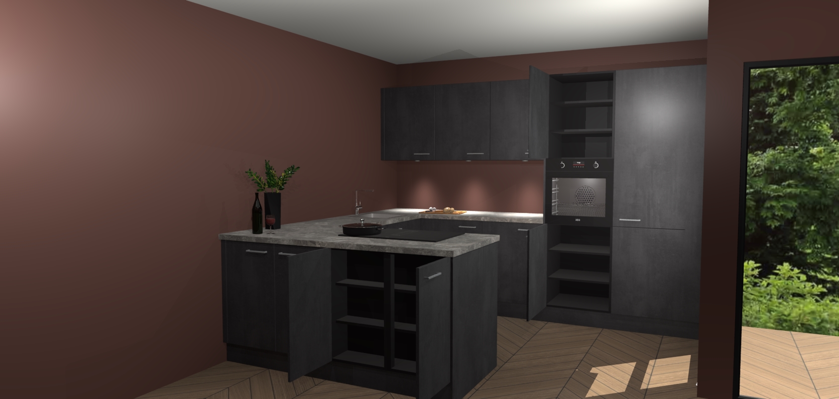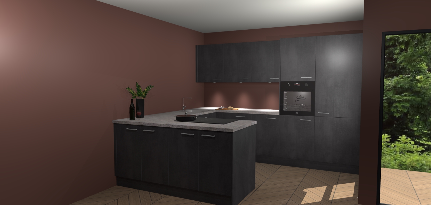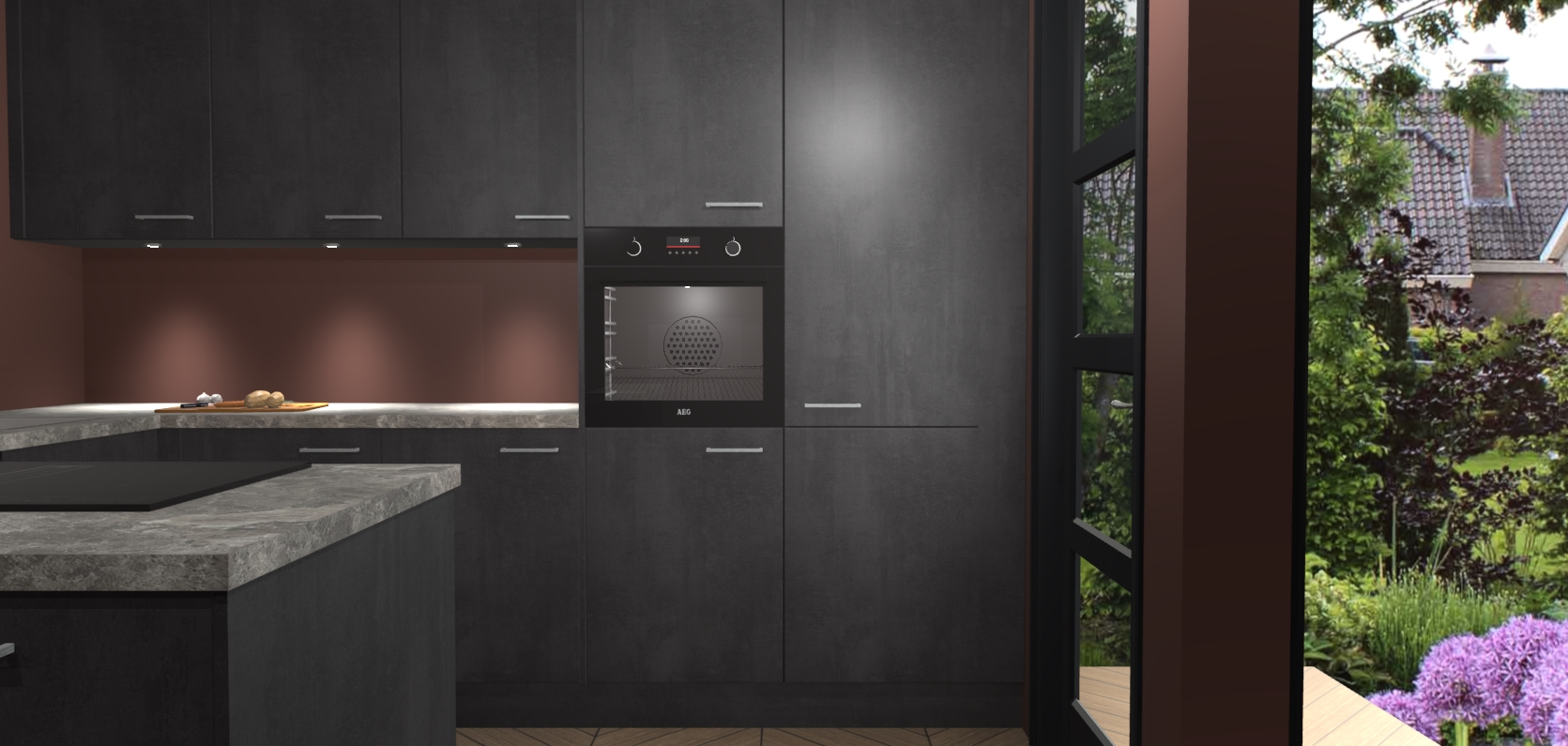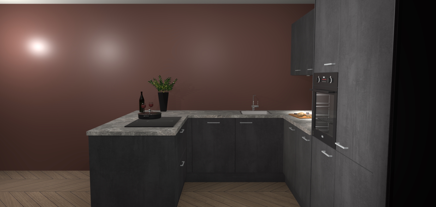 De perfecte toevoeging aan uw droomkeuken! De beton zwarte keuken Rosario is een opmerkelijke en verfijnde keuken. Hij is ontworpen met moderne lijnen en tijdloze schoonheid die garant staan voor een luxe uitstraling. Deze uiterst functionele en mooie keuken heeft een reeks verbazingwekkende functies: de overvloedige opbergruimte bevat soft close deuren, terwijl vijf inbouwapparaten zijn inbegrepen in de vaste lage prijs. Beter nog, uw beton zwarte keuken Rosario bestellen duurt slechts 7 weken met levering van voorgemonteerde kasten.