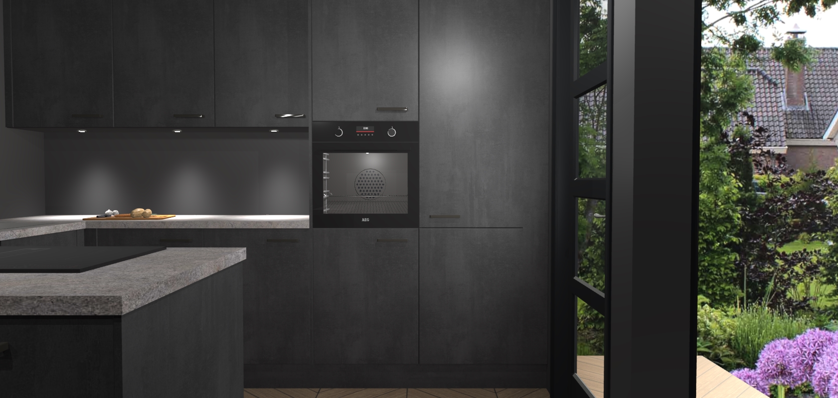 De perfecte toevoeging aan uw droomkeuken! De beton zwarte keuken Rosario is een opmerkelijke en verfijnde keuken. Hij is ontworpen met moderne lijnen en tijdloze schoonheid die garant staan voor een luxe uitstraling. Deze uiterst functionele en mooie keuken heeft een reeks verbazingwekkende functies: de overvloedige opbergruimte bevat soft close deuren, terwijl vijf inbouwapparaten zijn inbegrepen in de vaste lage prijs. Beter nog, uw beton zwarte keuken Rosario bestellen duurt slechts 7 weken met levering van voorgemonteerde kasten.