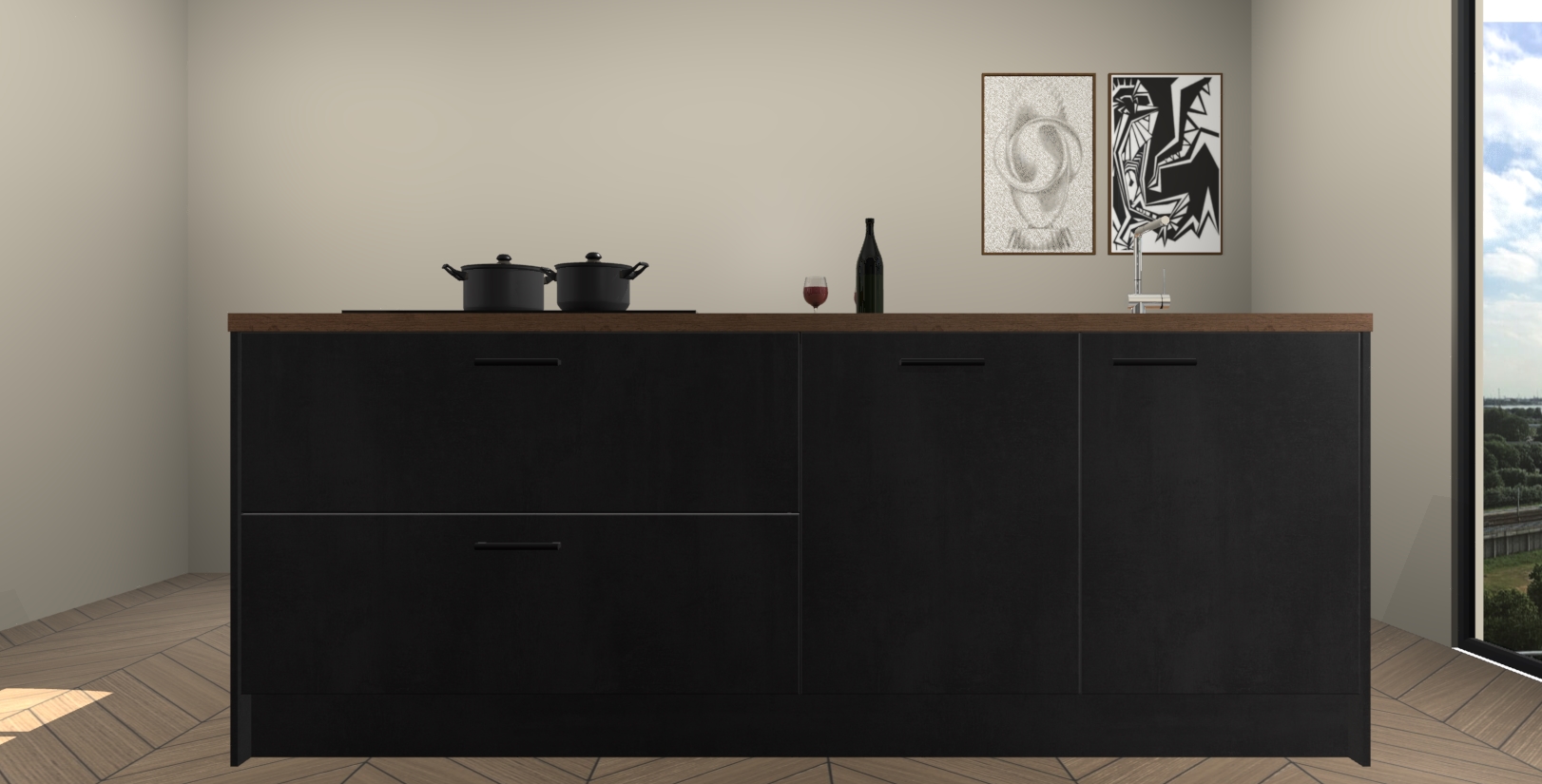 Breng luxe in uw keuken met de beton zwarte Rusiec Keuken! Dit prachtige kookeiland straalt elegantie uit en laat elke ruimte er modern en verfijnd uitzien. De strakke beton zwarte kleur geeft uw keuken een gevoel van sfeer en verfijning dat u bij andere stijlen niet krijgt.