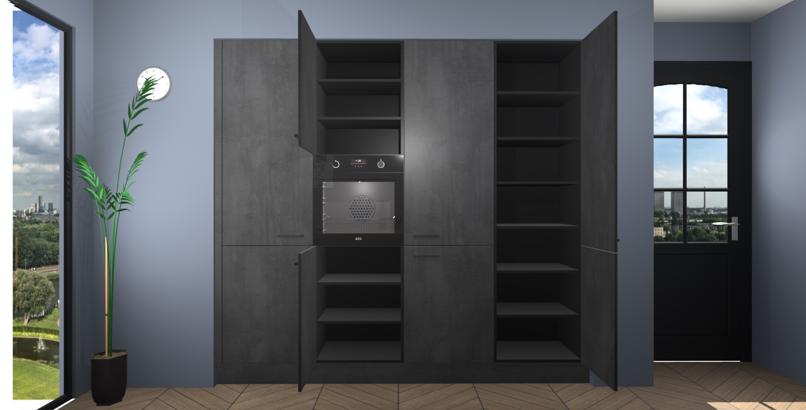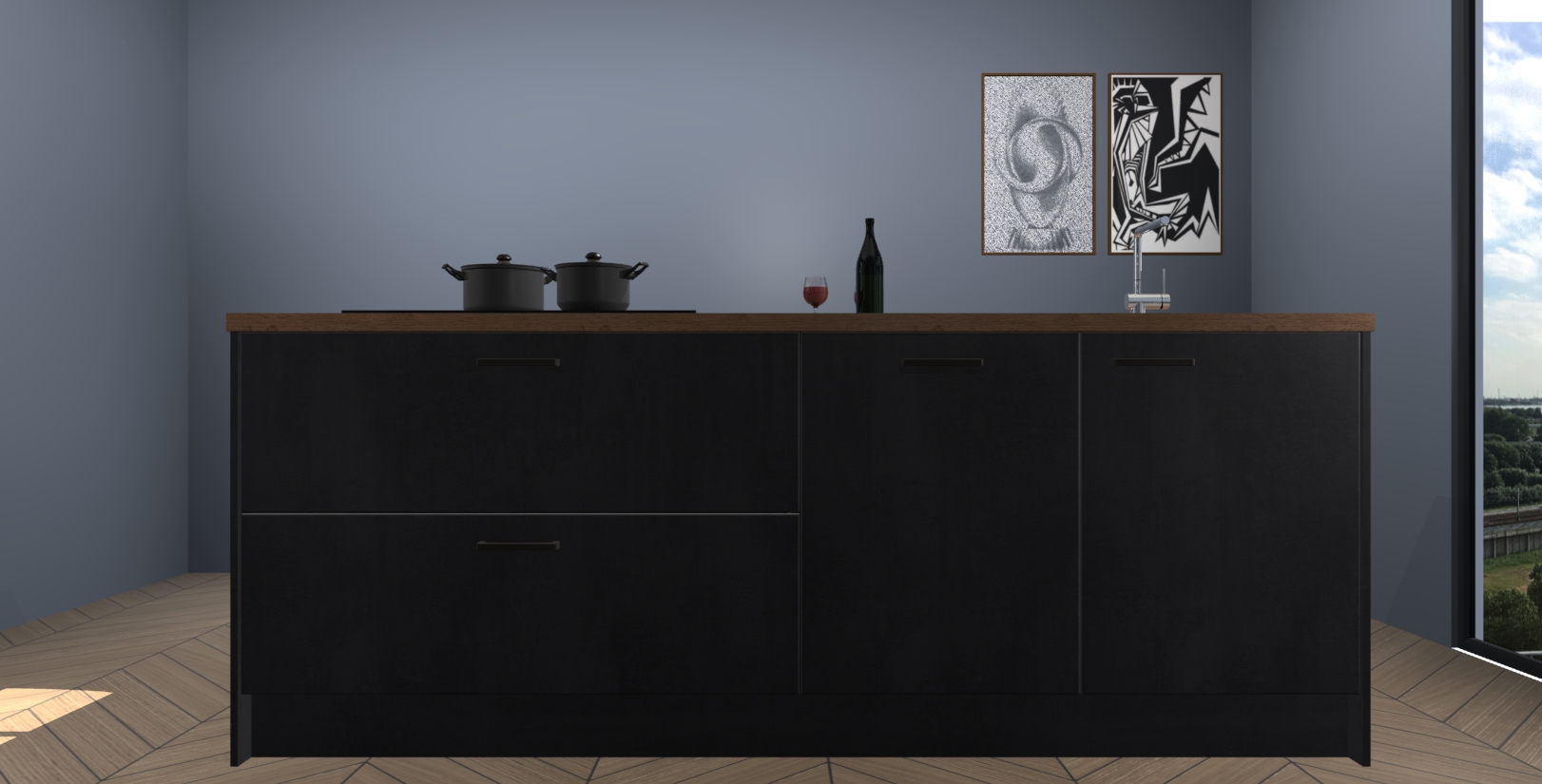 Breng luxe in uw keuken met de beton zwarte Rusiec Keuken! Dit prachtige kookeiland straalt elegantie uit en laat elke ruimte er modern en verfijnd uitzien. De strakke beton zwarte kleur geeft uw keuken een gevoel van sfeer en verfijning dat u bij andere stijlen niet krijgt.