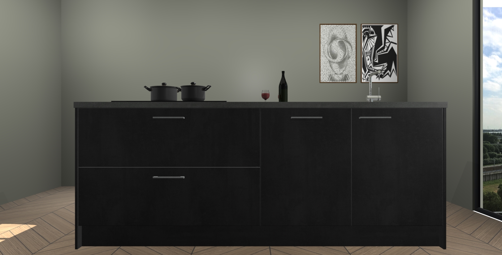 Breng luxe in uw keuken met de beton zwarte Rusiec Keuken! Dit prachtige kookeiland straalt elegantie uit en laat elke ruimte er modern en verfijnd uitzien. De strakke beton zwarte kleur geeft uw keuken een gevoel van sfeer en verfijning dat u bij andere stijlen niet krijgt.