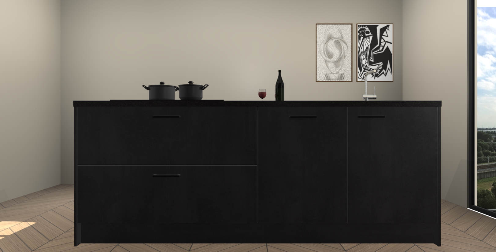 Breng luxe in uw keuken met de beton zwarte Rusiec Keuken! Dit prachtige kookeiland straalt elegantie uit en laat elke ruimte er modern en verfijnd uitzien. De strakke beton zwarte kleur geeft uw keuken een gevoel van sfeer en verfijning dat u bij andere stijlen niet krijgt.