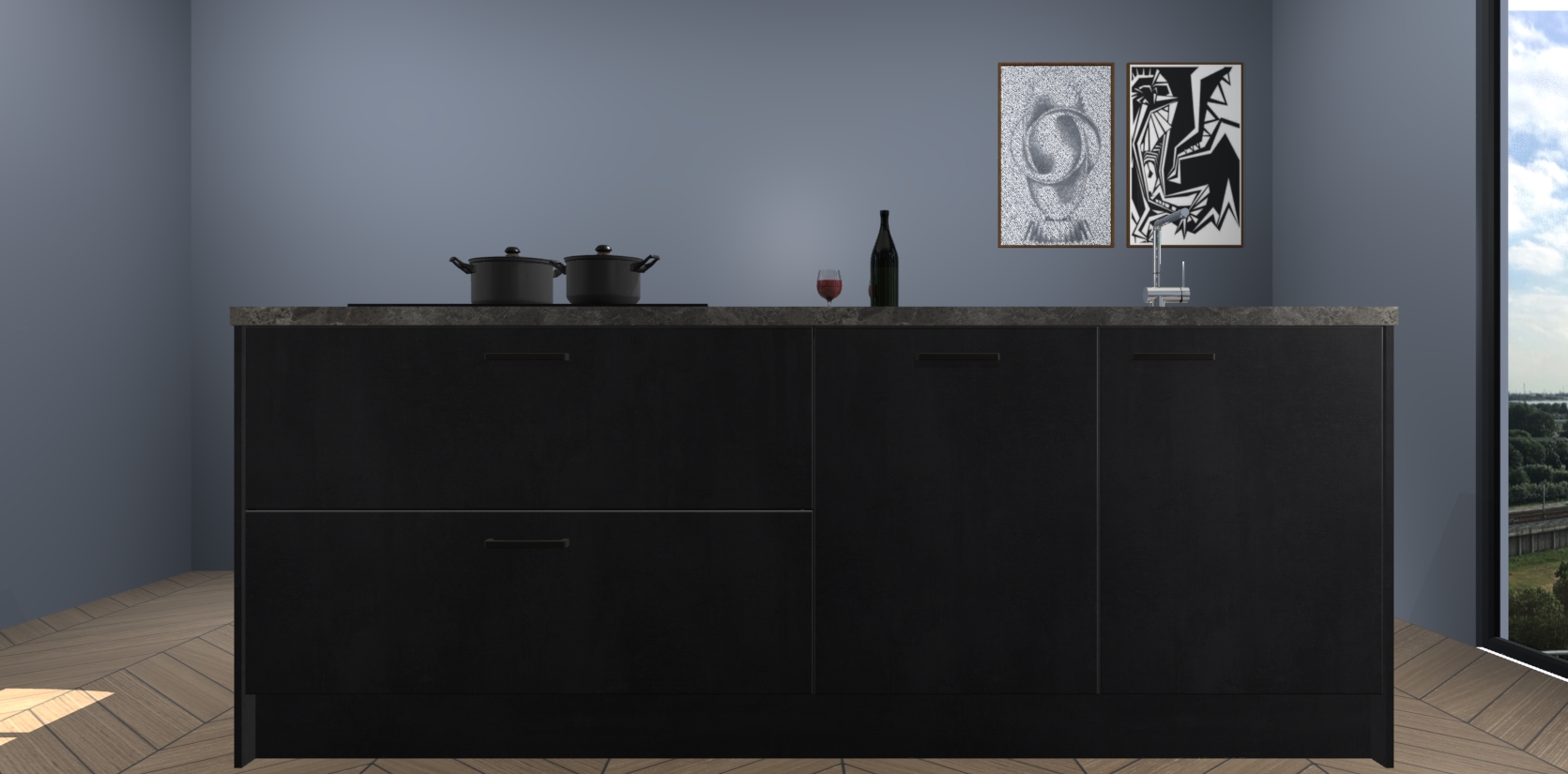 Breng luxe in uw keuken met de beton zwarte Rusiec Keuken! Dit prachtige kookeiland straalt elegantie uit en laat elke ruimte er modern en verfijnd uitzien. De strakke beton zwarte kleur geeft uw keuken een gevoel van sfeer en verfijning dat u bij andere stijlen niet krijgt.