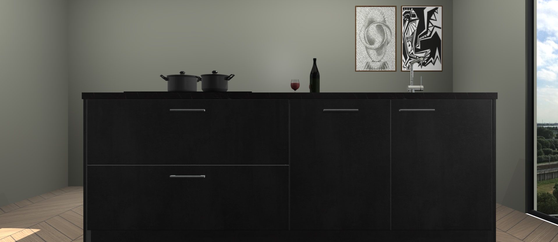 Breng luxe in uw keuken met de beton zwarte Rusiec Keuken! Dit prachtige kookeiland straalt elegantie uit en laat elke ruimte er modern en verfijnd uitzien. De strakke beton zwarte kleur geeft uw keuken een gevoel van sfeer en verfijning dat u bij andere stijlen niet krijgt.
