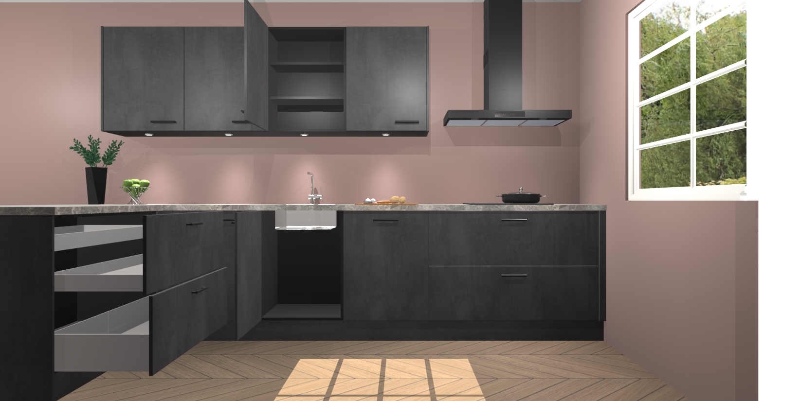 Inclusief plinten, stelpoten en werkblad