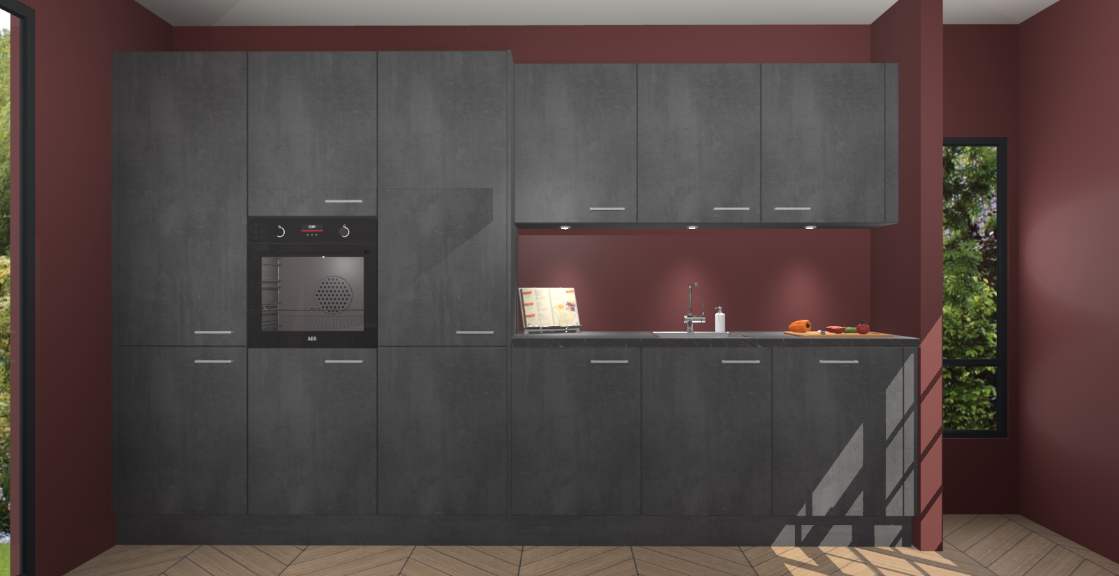 Maak kennis met de nieuwe Beton Zwarte keuken Straatsburg, dat gemaakt is voor de moderne huiseigenaar. Deze chique en eigentijdse keuken geeft uw huis een instant upgrade. Het Beton Zwarte ontwerp creëert de perfecte balans tussen elegantie en functionaliteit en geeft uw ruimte een strakke, uitnodigende sfeer. Het spoeleiland geeft ruime opbergruimte en met de soft-close deuren is deze keuken perfect voor elk huis.