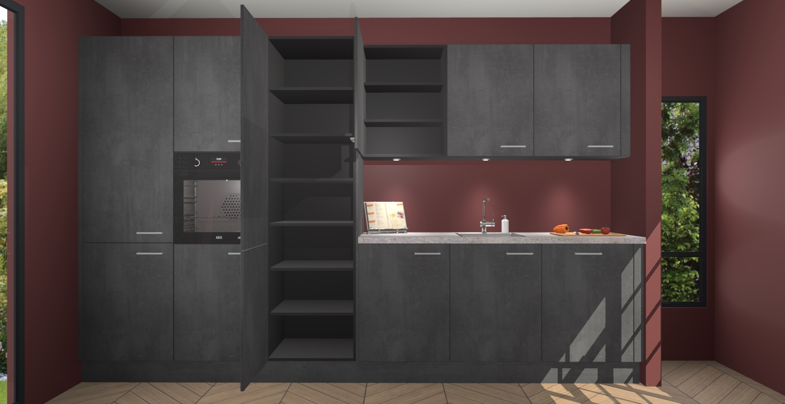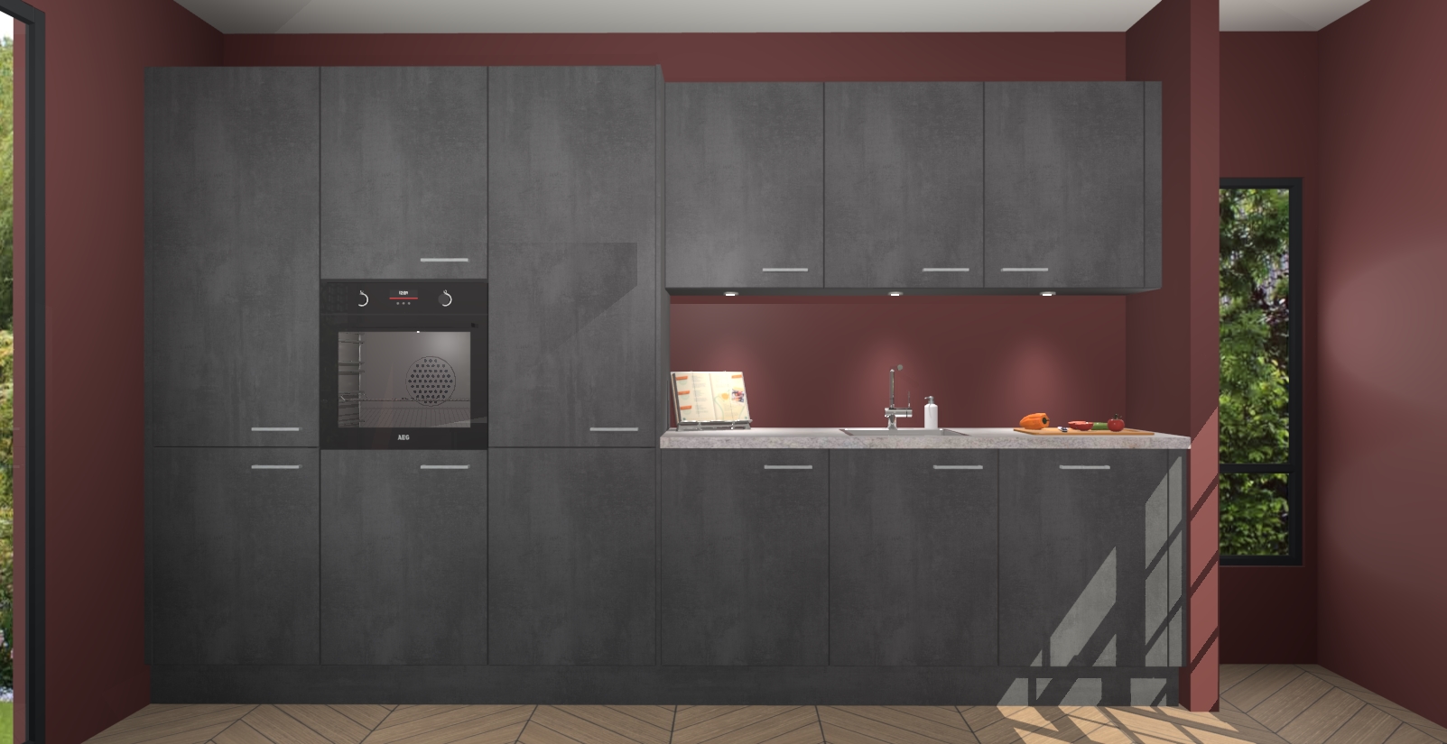 Maak kennis met de nieuwe Beton Zwarte keuken Straatsburg, dat gemaakt is voor de moderne huiseigenaar. Deze chique en eigentijdse keuken geeft uw huis een instant upgrade. Het Beton Zwarte ontwerp creëert de perfecte balans tussen elegantie en functionaliteit en geeft uw ruimte een strakke, uitnodigende sfeer. Het spoeleiland geeft ruime opbergruimte en met de soft-close deuren is deze keuken  perfect voor elk huis.
