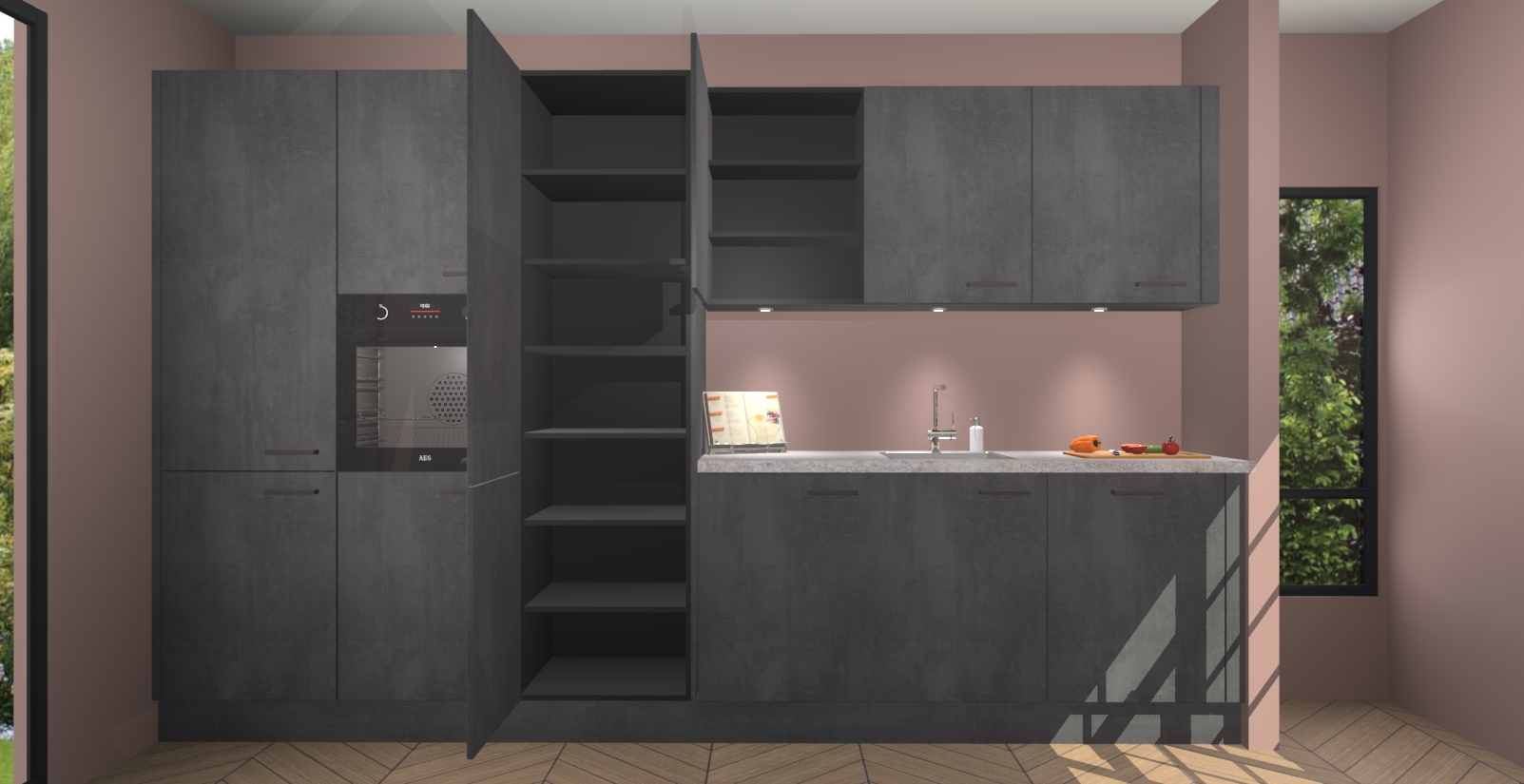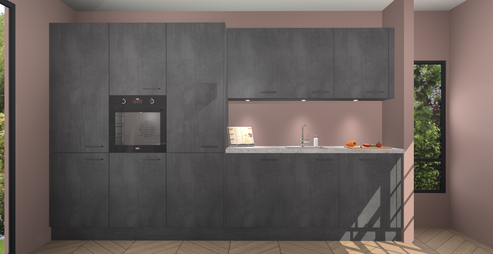 Maak kennis met de nieuwe Beton Zwarte keuken Straatsburg, dat gemaakt is voor de moderne huiseigenaar. Deze chique en eigentijdse keuken geeft uw huis een instant upgrade. Het Beton Zwarte ontwerp creëert de perfecte balans tussen elegantie en functionaliteit en geeft uw ruimte een strakke, uitnodigende sfeer. Het spoeleiland geeft ruime opbergruimte en met de soft-close deuren is deze keuken  perfect voor elk huis.