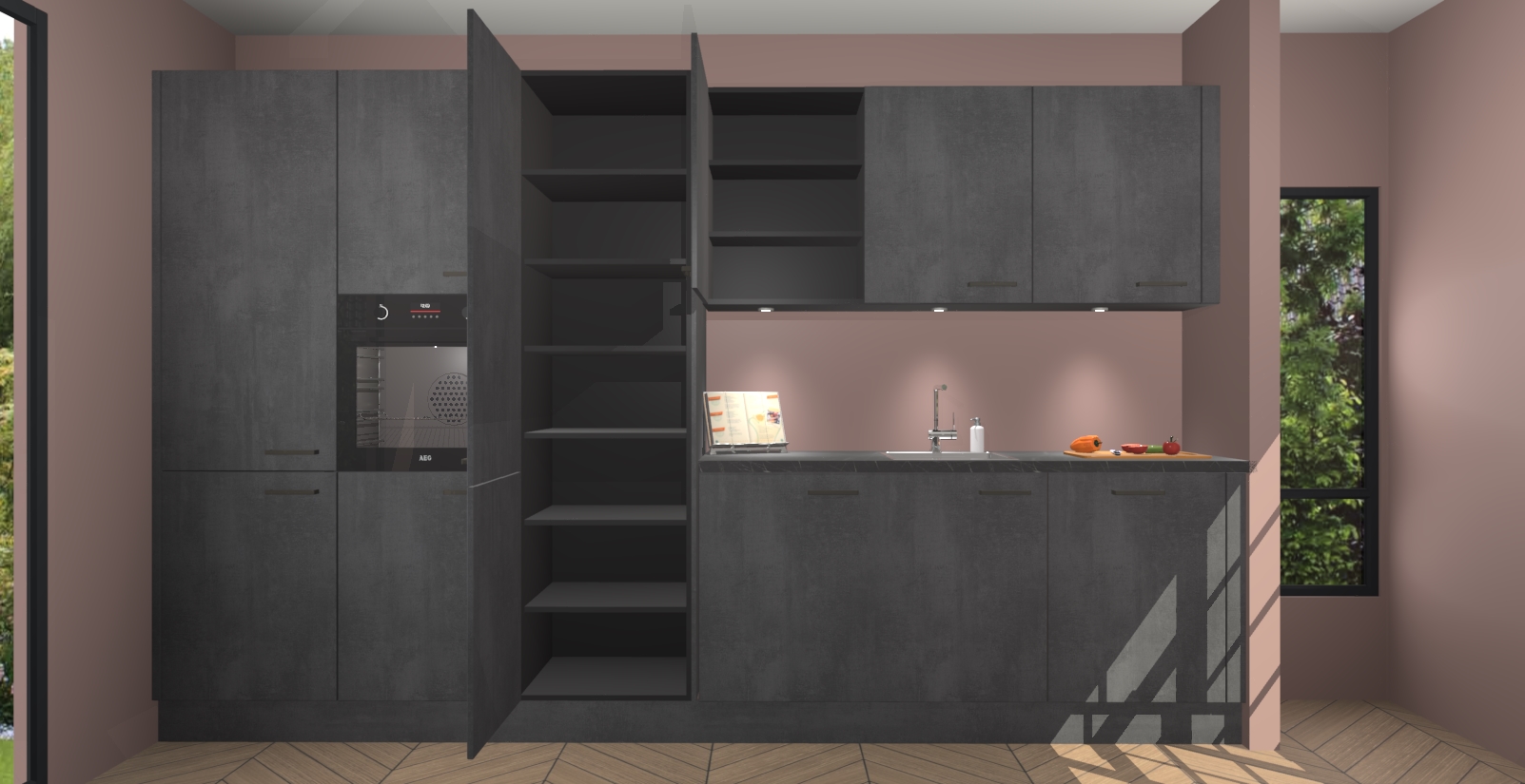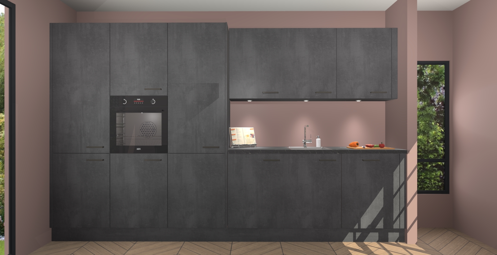 Maak kennis met de nieuwe Beton Zwarte keuken Straatsburg, dat gemaakt is voor de moderne huiseigenaar. Deze chique en eigentijdse keuken geeft uw huis een instant upgrade. Het Beton Zwarte ontwerp creëert de perfecte balans tussen elegantie en functionaliteit en geeft uw ruimte een strakke, uitnodigende sfeer. Het spoeleiland geeft ruime opbergruimte en met de soft-close deuren is deze keuken  perfect voor elk huis.