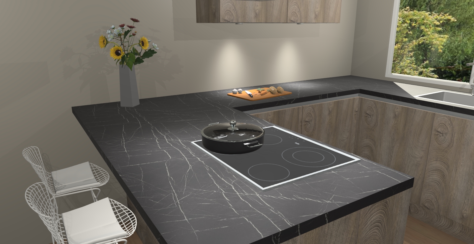 • Bij een hoekwerkblad zijn de hoeken in gevreesd en op maat gemaakt