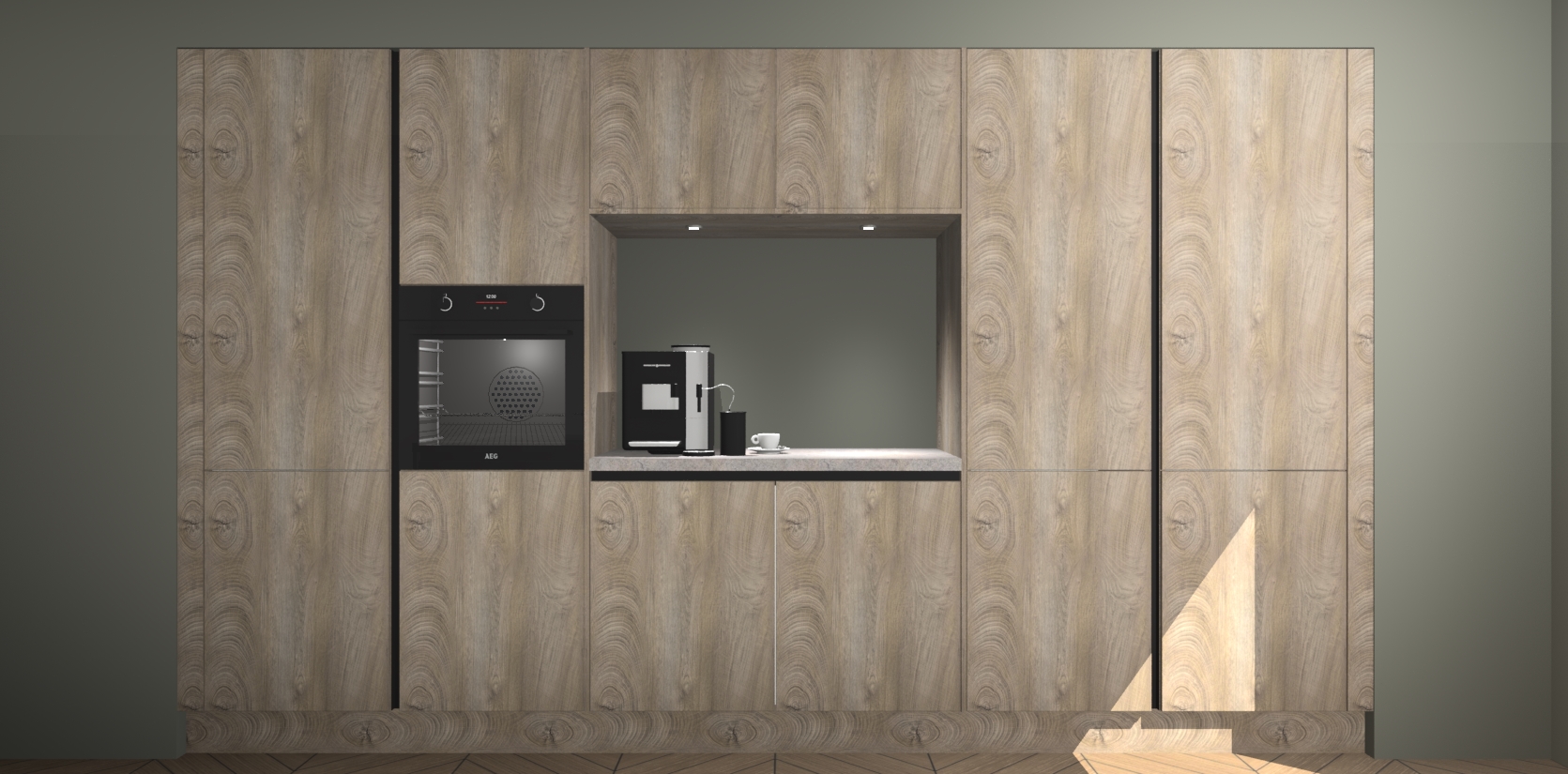 De Cantaro Eiken greeploze keuken Lodz wordt geleverd met een set van 5 ingebouwde apparaten: Een oven, inductiekookplaat, afzuigkap, vaatwasser en koelkast. Deze kunnen gemakkelijk worden opgewaardeerd naar AEG. Met de gegarandeerde lage prijs en de snelle levering van 7 weken kan u er op rekenen dat de Cantaro Eiken greeploze keuken Lodz zo snel mogelijk uw huis bereikt!