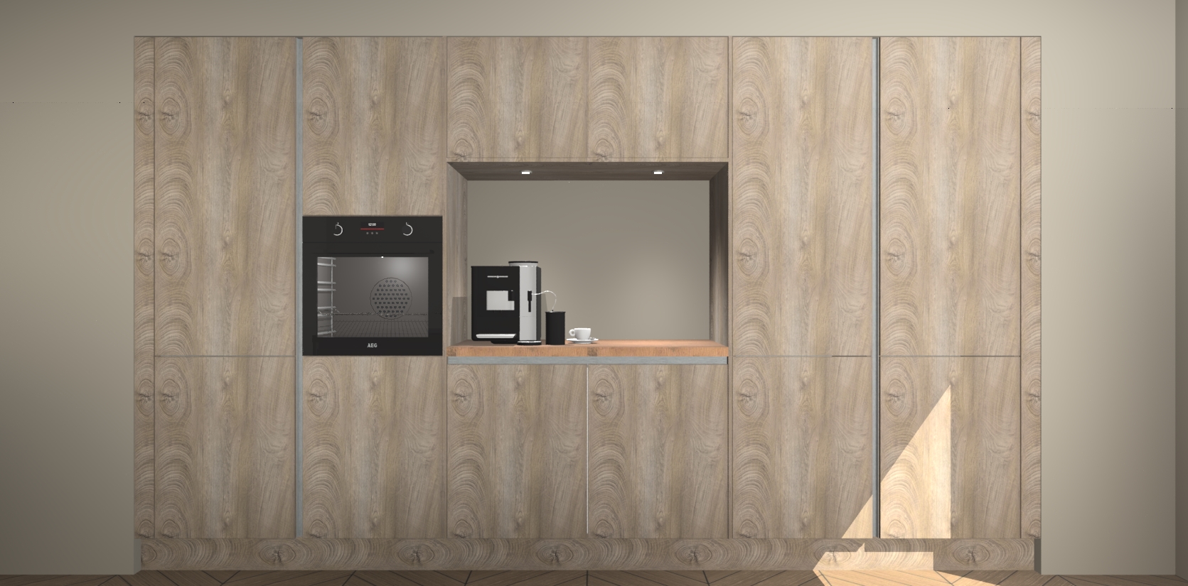 De Cantaro Eiken greeploze keuken Lodz wordt geleverd met een set van 5 ingebouwde apparaten: Een oven, inductiekookplaat, afzuigkap, vaatwasser en koelkast. Deze kunnen gemakkelijk worden opgewaardeerd naar AEG. Met de gegarandeerde lage prijs en de snelle levering van 7 weken kan u er op rekenen dat de Cantaro Eiken greeploze keuken Lodz zo snel mogelijk uw huis bereikt!