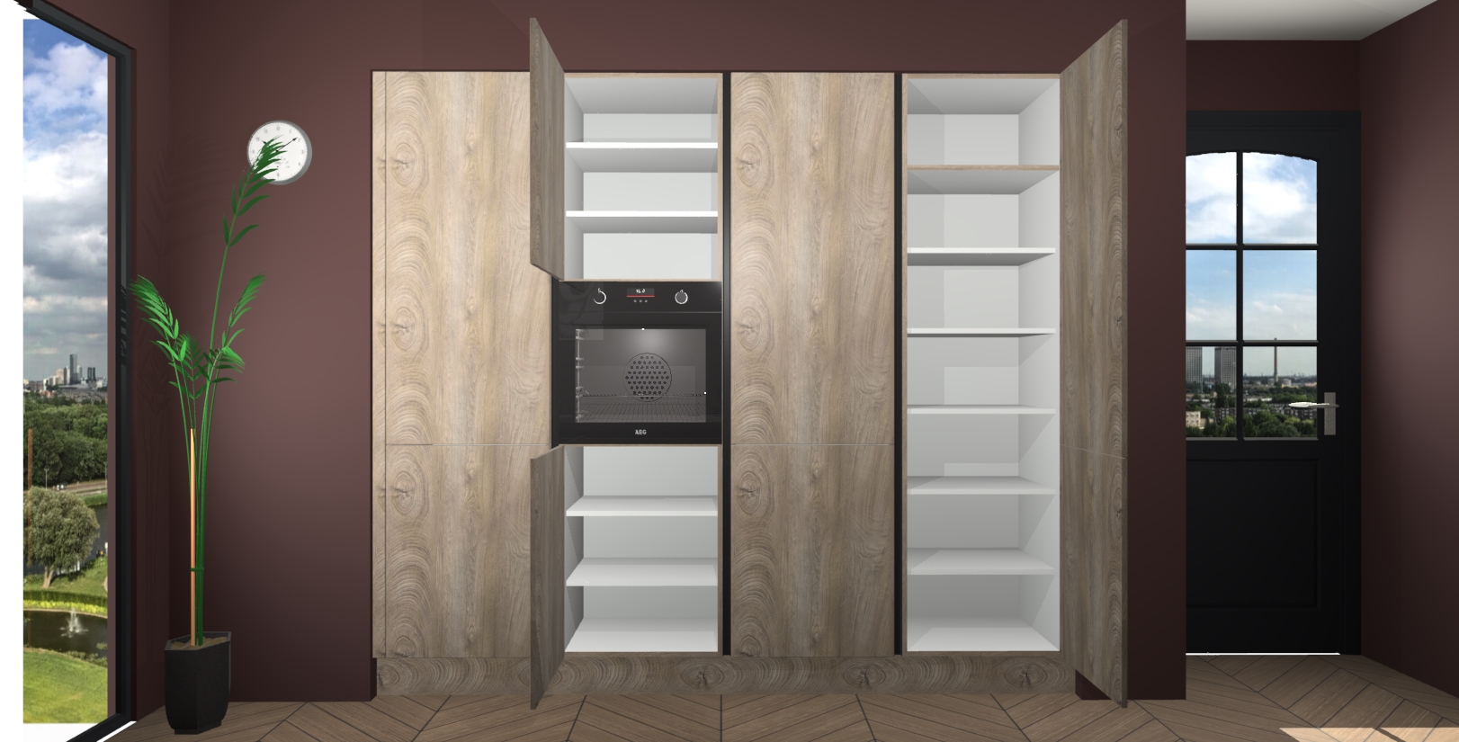 Dankzij de vele opbergruimte wordt praktisch elke centimeter van uw keuken optimaal benut, wat de ruimte een opgeruimde en sfeervolle uitstraling geeft. Bovendien zijn we er trots op dat we een snelle levering van 7 weken en een vaste lage prijs kunnen bieden, zodat u deze prachtige keuken in een mum van tijd in huis hebt!