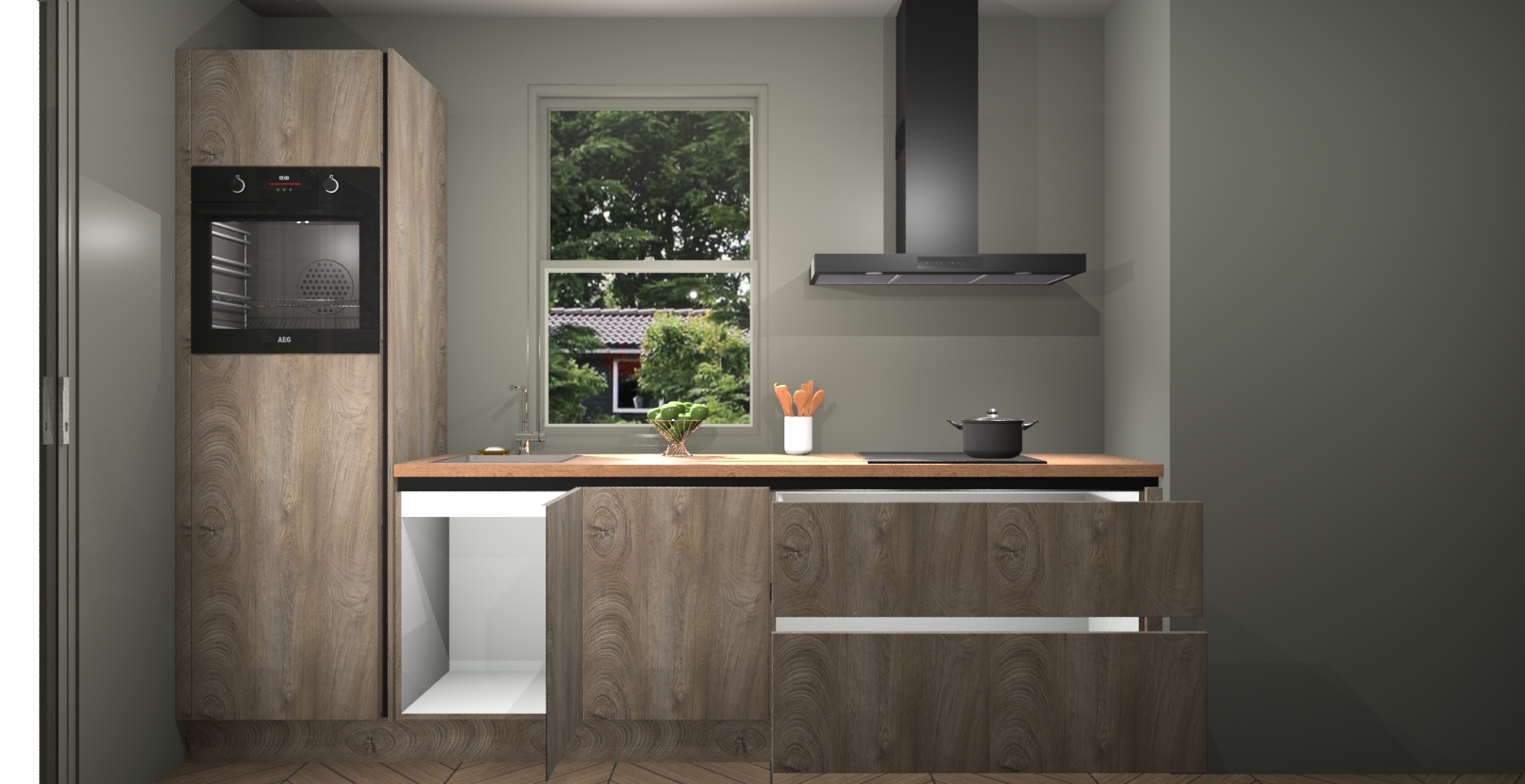 Dankzij de greeploze afwerking past de Cantaro Eiken keuken Toulouse naadloos in elk huis of appartement. De soft-close deuren geven je extra gemoedsrust, want ze sluiten vanzelf en slaan nooit dicht! En alsof dat nog niet genoeg is, worden deze kasten volledig gemonteerd geleverd, dus maak je geen zorgen over eventuele installatieproblemen.