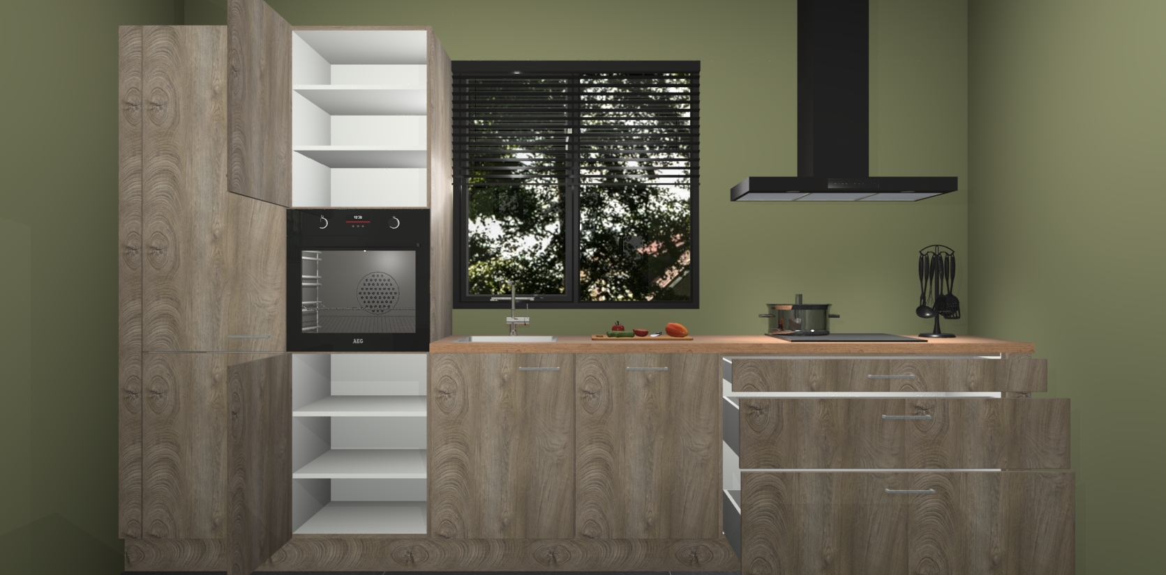 Maak kennis met de cantaro eiken keuken Bonaire: de perfecte balans tussen tijdloos en modern. Met voldoende opbergruimte zal deze keuken de afgunst van uw vrienden en familie zijn, terwijl uw leven moeiteloos georganiseerd en rommelvrij blijft.