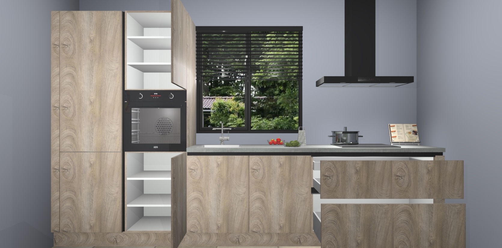 In deze box zijn alle kleuren verzameld van de deuren en werkbladen. Vraag de gratis kleurenbox aan en kijk thuis rustig verder!