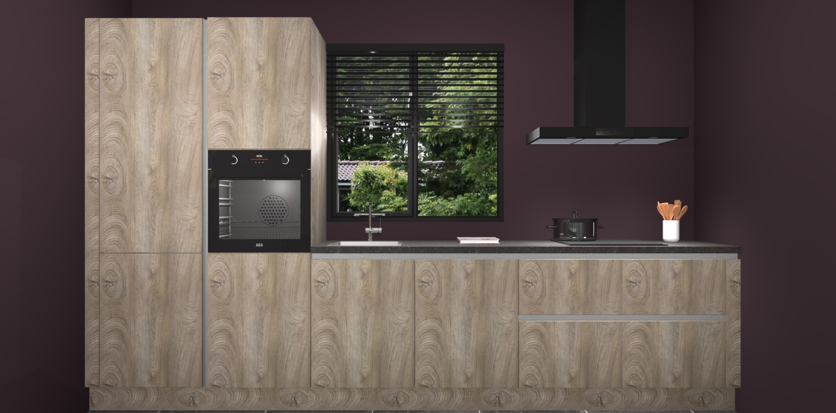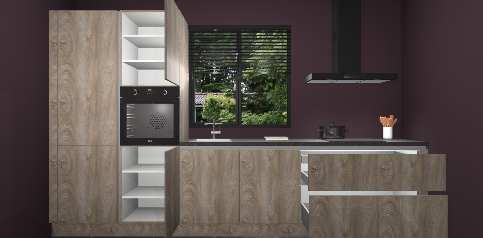 Maak kennis met de cantaro eiken keuken Bonaire: de perfecte balans tussen tijdloos en modern. Met voldoende opbergruimte zal deze keuken de afgunst van uw vrienden en familie zijn, terwijl uw leven moeiteloos georganiseerd en rommelvrij blijft.