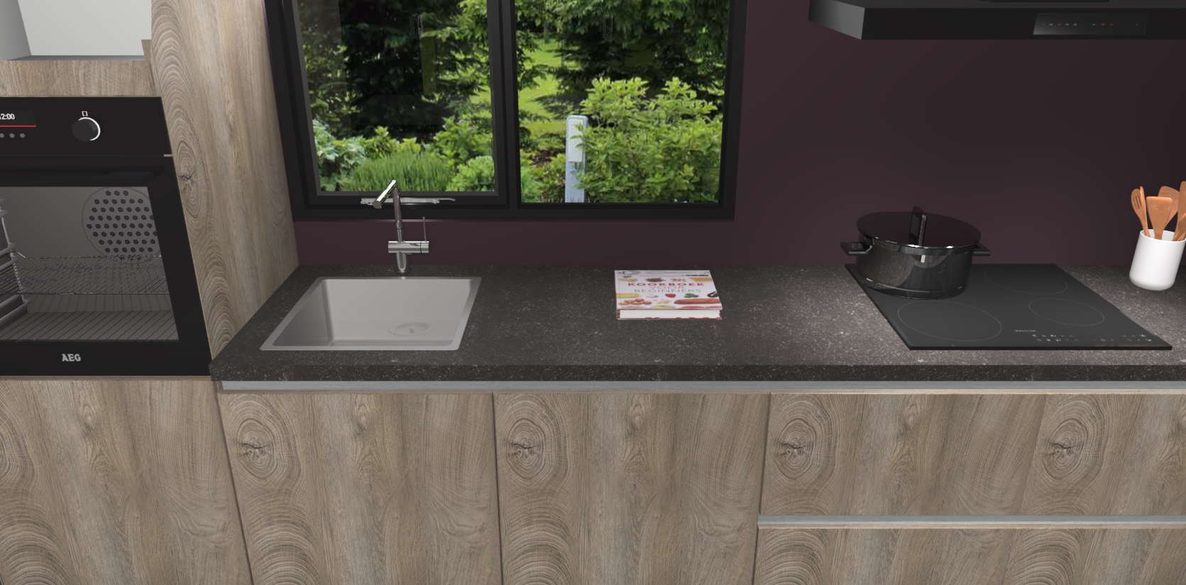 • Uitsparing van kookplaat, spoelbak en kraan dient u zelf te verzorgen.