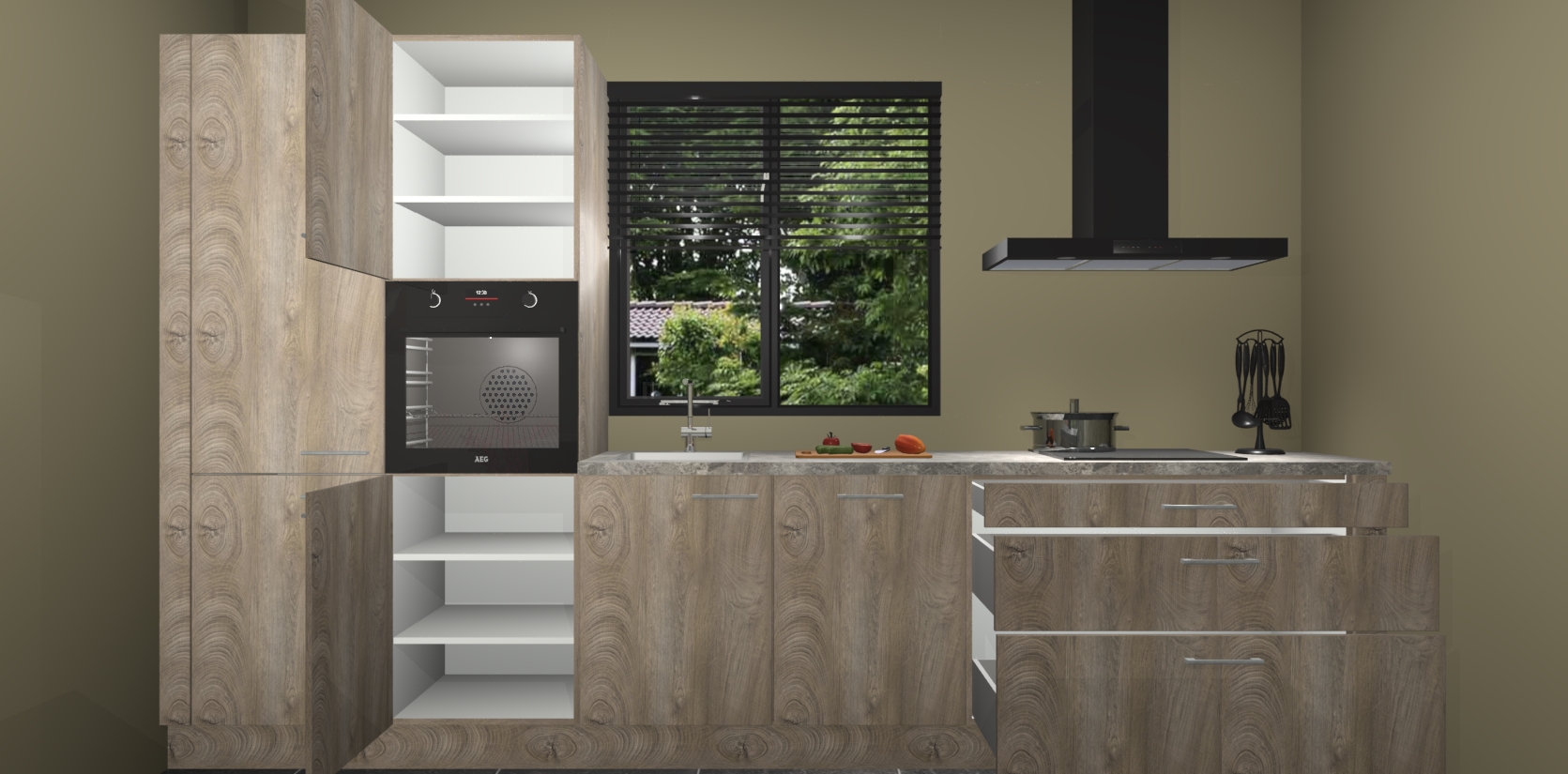 Maak kennis met de cantaro eiken keuken Bonaire: de perfecte balans tussen tijdloos en modern. Met voldoende opbergruimte zal deze keuken de afgunst van uw vrienden en familie zijn, terwijl uw leven moeiteloos georganiseerd en rommelvrij blijft.