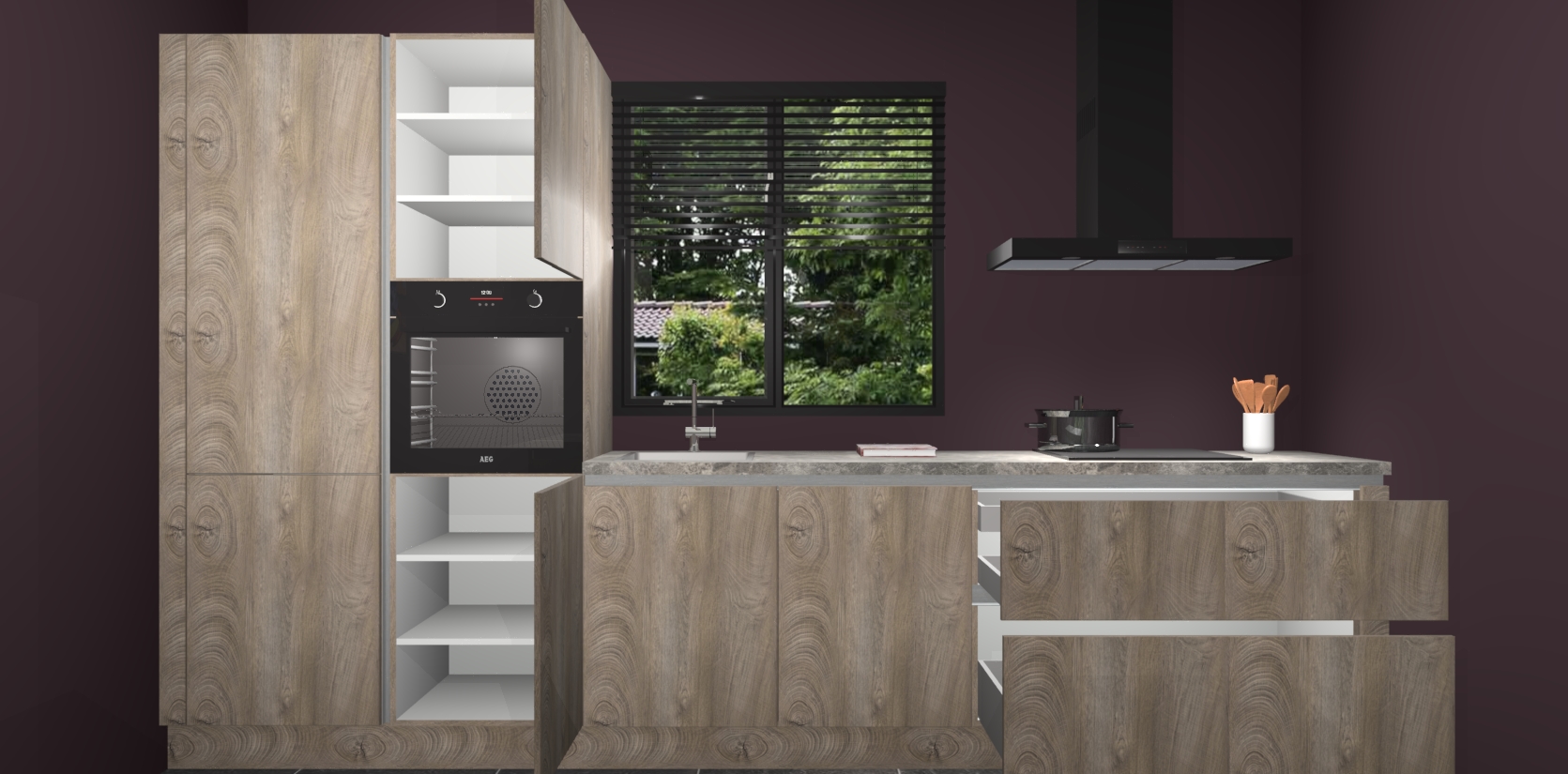 Maak kennis met de cantaro eiken keuken Bonaire: de perfecte balans tussen tijdloos en modern. Met voldoende opbergruimte zal deze keuken de afgunst van uw vrienden en familie zijn, terwijl uw leven moeiteloos georganiseerd en rommelvrij blijft.