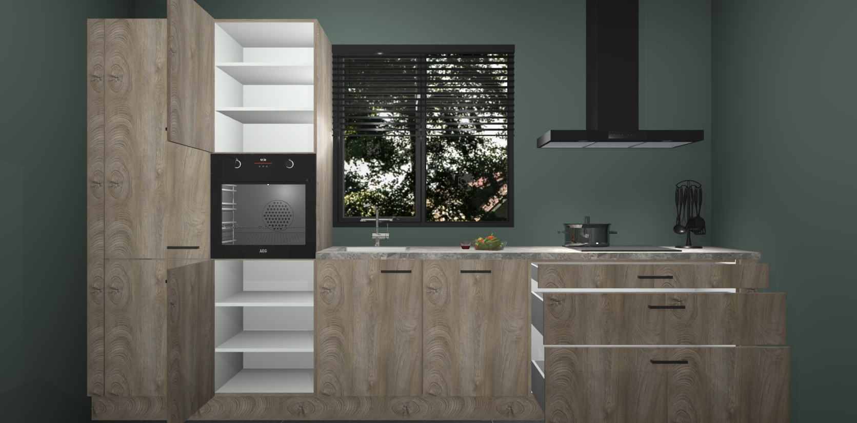 Maak kennis met de cantaro eiken keuken Bonaire: de perfecte balans tussen tijdloos en modern. Met voldoende opbergruimte zal deze keuken de afgunst van uw vrienden en familie zijn, terwijl uw leven moeiteloos georganiseerd en rommelvrij blijft.