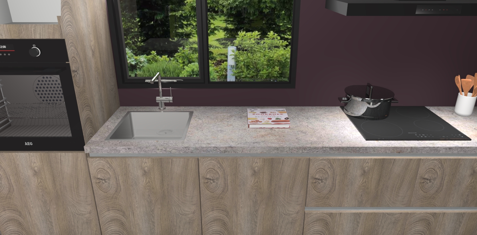 - Uitsparing van kookplaat, spoelbak en kraan dient u zelf te verzorgen.