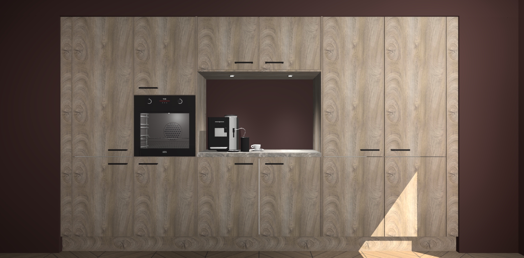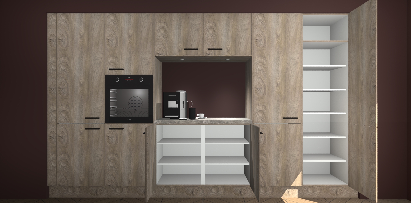 De Cantaro Eiken keuken Lodz wordt geleverd met een set van 5 ingebouwde apparaten: Een oven, inductiekookplaat, afzuigkap, vaatwasser en koelkast. Deze kunnen gemakkelijk worden opgewaardeerd naar AEG. Met de gegarandeerde lage prijs en de snelle levering van 7 weken kan u er op rekenen dat de Cantaro Eiken keuken Lodz zo snel mogelijk uw huis bereikt!