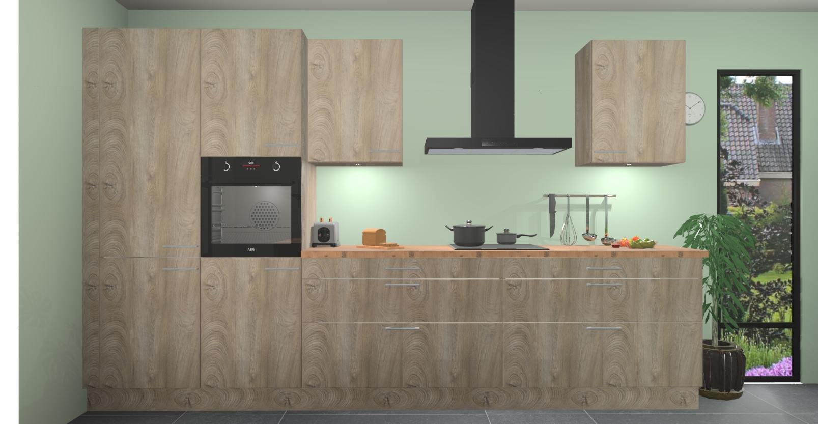 Klaar om een statement te maken in uw keuken? De cantaro eiken keuken Spanje is precies wat u nodig heeft. Dit moderne keuken ontwerp is de perfecte balans tussen esthetiek en functionaliteit in uw huis. Met een sfeervolle afwerking en voldoende opbergruimte kan u er zeker van zijn dat u heerlijke maaltijden bereidt en ze in uw keuken kan bewaren voor de dagen dat u het te druk hebt. Bovendien voegt het mooie spoeleiland een element van klasse en gemak toe aan uw keuken.