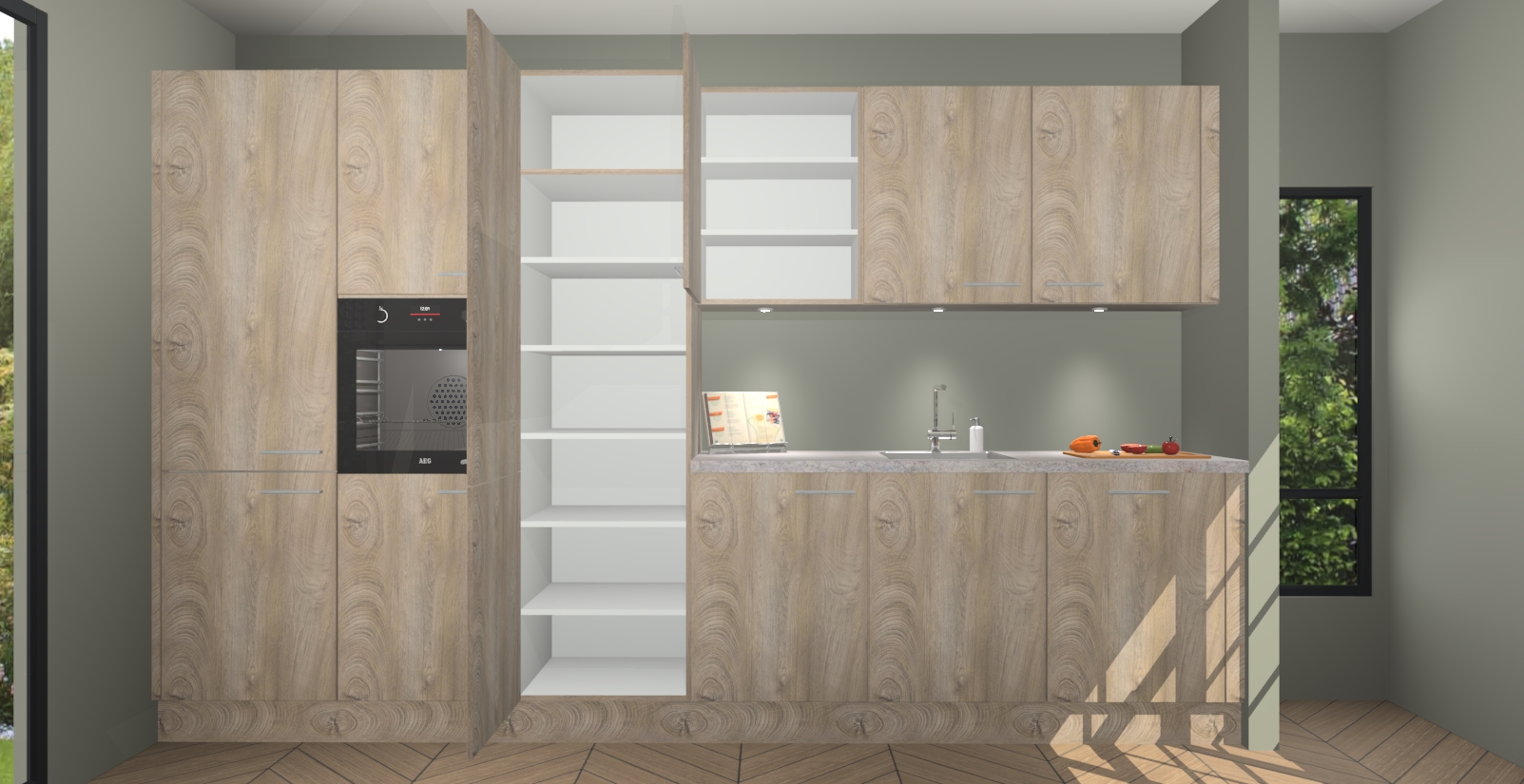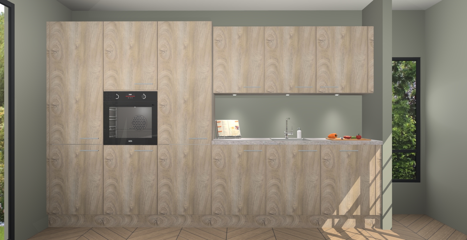 Maak kennis met de nieuwe Cantaro Eiken keuken Straatsburg, dat gemaakt is voor de moderne huiseigenaar. Deze chique en eigentijdse keuken geeft uw huis een instant upgrade. Het Cantaro Eiken ontwerp creëert de perfecte balans tussen elegantie en functionaliteit en geeft uw ruimte een strakke, uitnodigende sfeer. Het spoeleiland geeft ruime opbergruimte en met de soft-close deuren is deze keuken perfect voor elk huis.