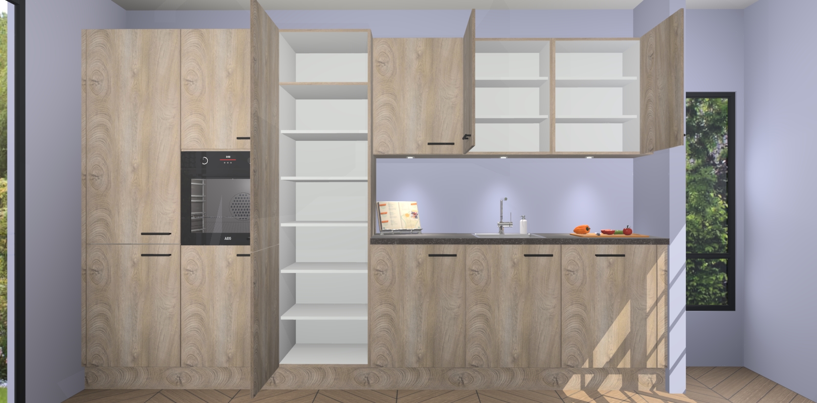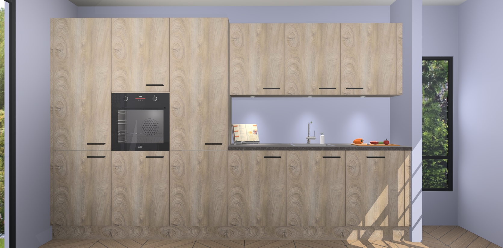Maak kennis met de nieuwe Cantaro Eiken keuken Straatsburg, dat gemaakt is voor de moderne huiseigenaar. Deze chique en eigentijdse keuken geeft uw huis een instant upgrade. Het Cantaro Eiken ontwerp creëert de perfecte balans tussen elegantie en functionaliteit en geeft uw ruimte een strakke, uitnodigende sfeer. Het spoeleiland geeft ruime opbergruimte en met de soft-close deuren is deze keuken perfect voor elk huis.