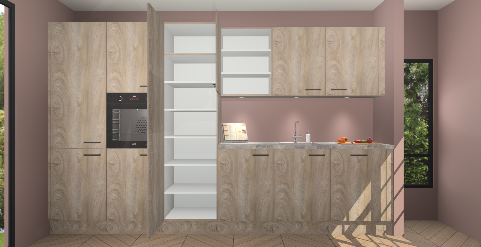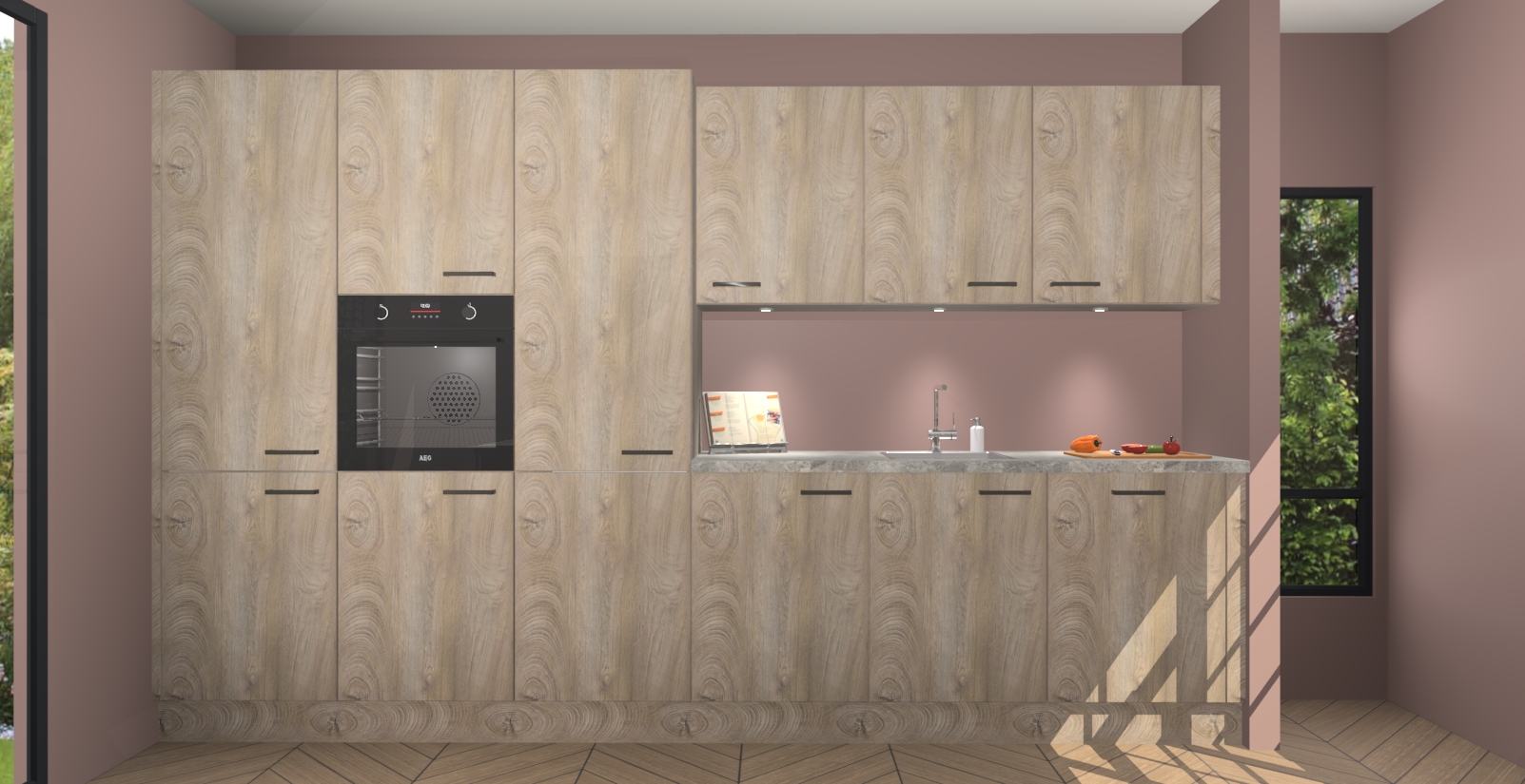 Maak kennis met de nieuwe Cantaro Eiken keuken Straatsburg, dat gemaakt is voor de moderne huiseigenaar. Deze chique en eigentijdse keuken geeft uw huis een instant upgrade. Het Cantaro Eiken ontwerp creëert de perfecte balans tussen elegantie en functionaliteit en geeft uw ruimte een strakke, uitnodigende sfeer. Het spoeleiland geeft ruime opbergruimte en met de soft-close deuren is deze keuken perfect voor elk huis.