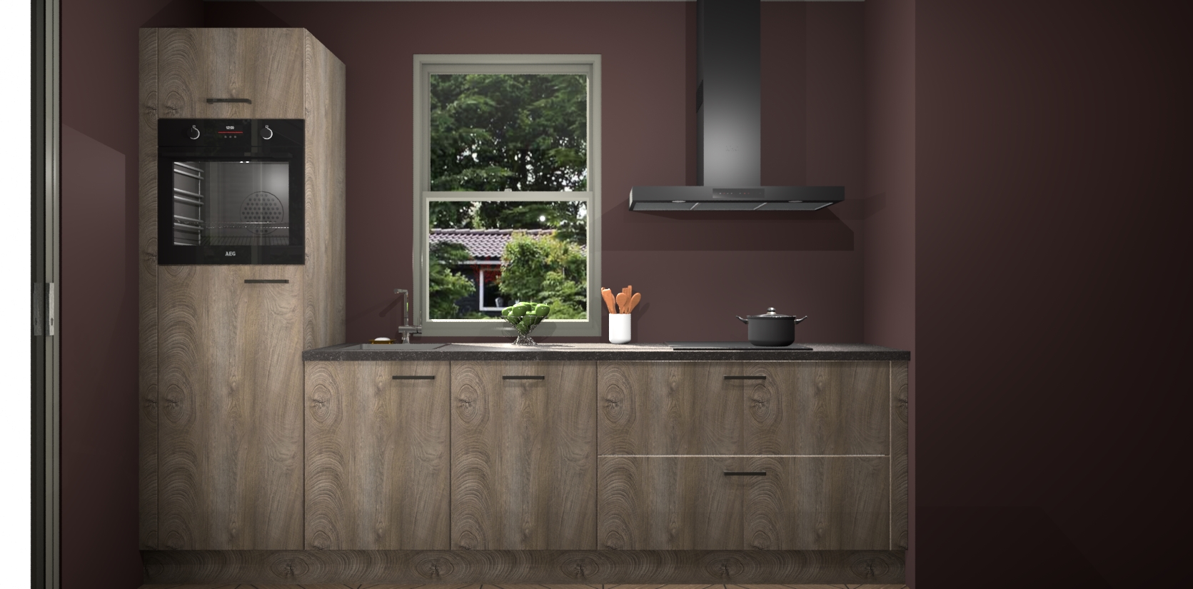 Een stijlvolle en praktische keuken als deze mag gezien worden. Dankzij de prachtige Cantaro Eiken afwerking wordt de keuken gemakkelijk het middelpunt van uw huis - hij ziet er geweldig uit onder allerlei lichtomstandigheden, van dag tot nacht!