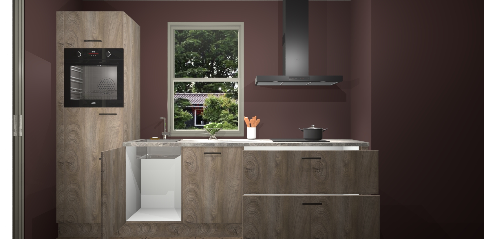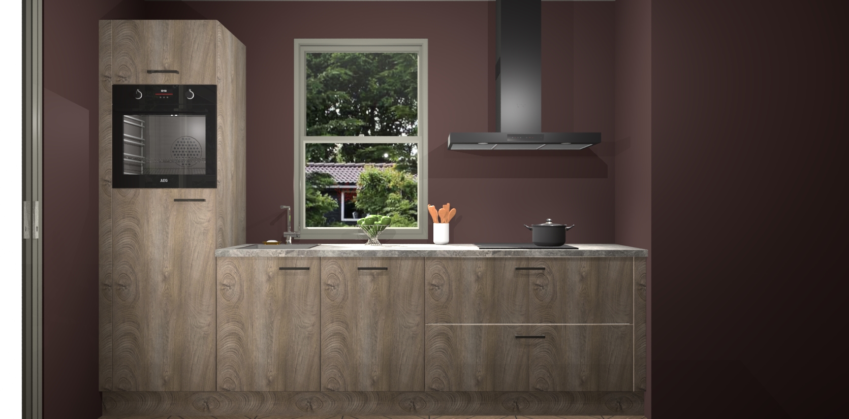 Een stijlvolle en praktische keuken als deze mag gezien worden. Dankzij de prachtige Cantaro Eiken afwerking wordt de keuken gemakkelijk het middelpunt van uw huis - hij ziet er geweldig uit onder allerlei lichtomstandigheden, van dag tot nacht!