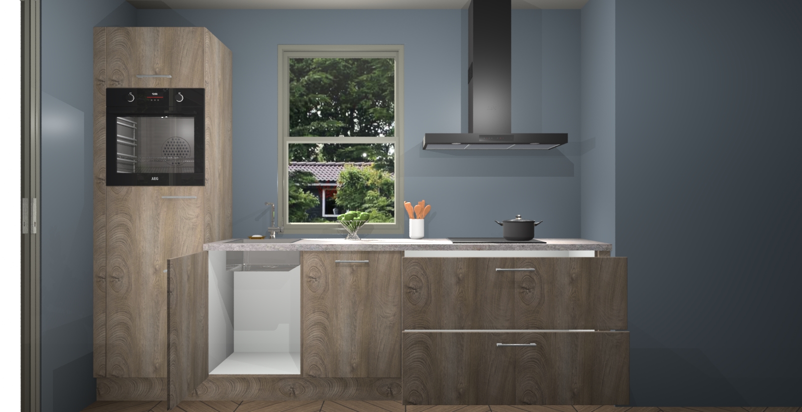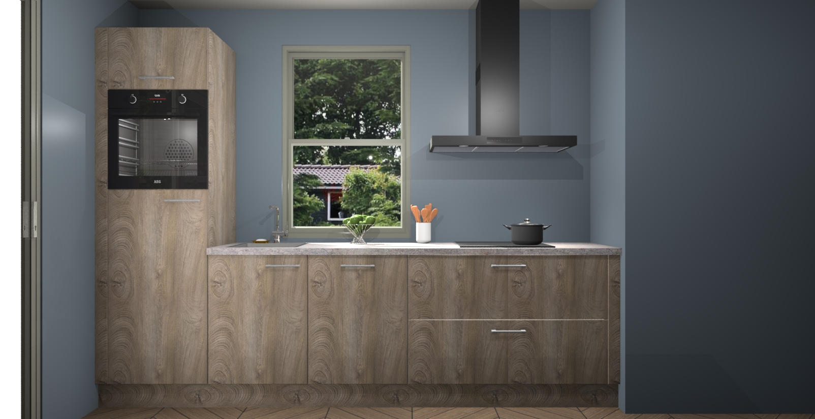 Een stijlvolle en praktische keuken als deze mag gezien worden. Dankzij de prachtige Cantaro Eiken afwerking wordt de keuken gemakkelijk het middelpunt van uw huis - hij ziet er geweldig uit onder allerlei lichtomstandigheden, van dag tot nacht!