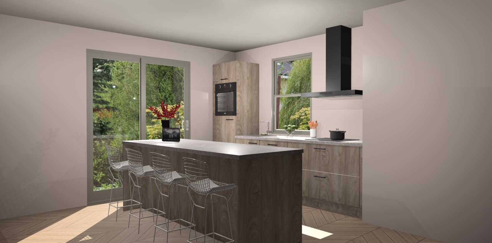 Een stijlvolle en praktische keuken als deze mag gezien worden. Dankzij de prachtige Cantaro Eiken afwerking wordt de keuken gemakkelijk het middelpunt van uw huis - hij ziet er geweldig uit onder allerlei lichtomstandigheden, van dag tot nacht!