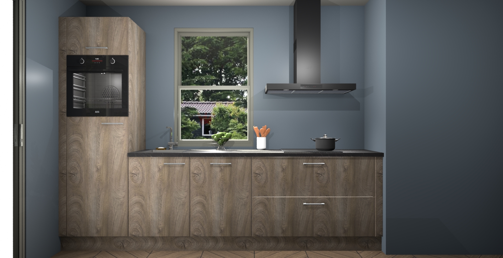 Een stijlvolle en praktische keuken als deze mag gezien worden. Dankzij de prachtige Cantaro Eiken afwerking wordt de keuken gemakkelijk het middelpunt van uw huis - hij ziet er geweldig uit onder allerlei lichtomstandigheden, van dag tot nacht!