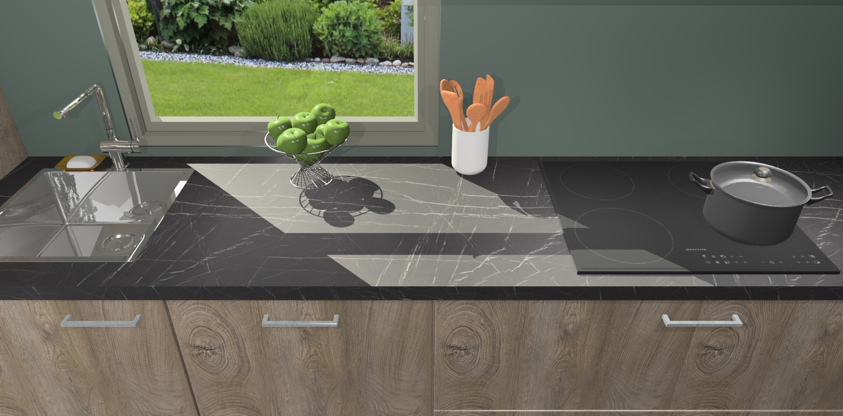 - Bij een hoekwerkblad zijn de hoeken in gevreesd en op maat gemaakt