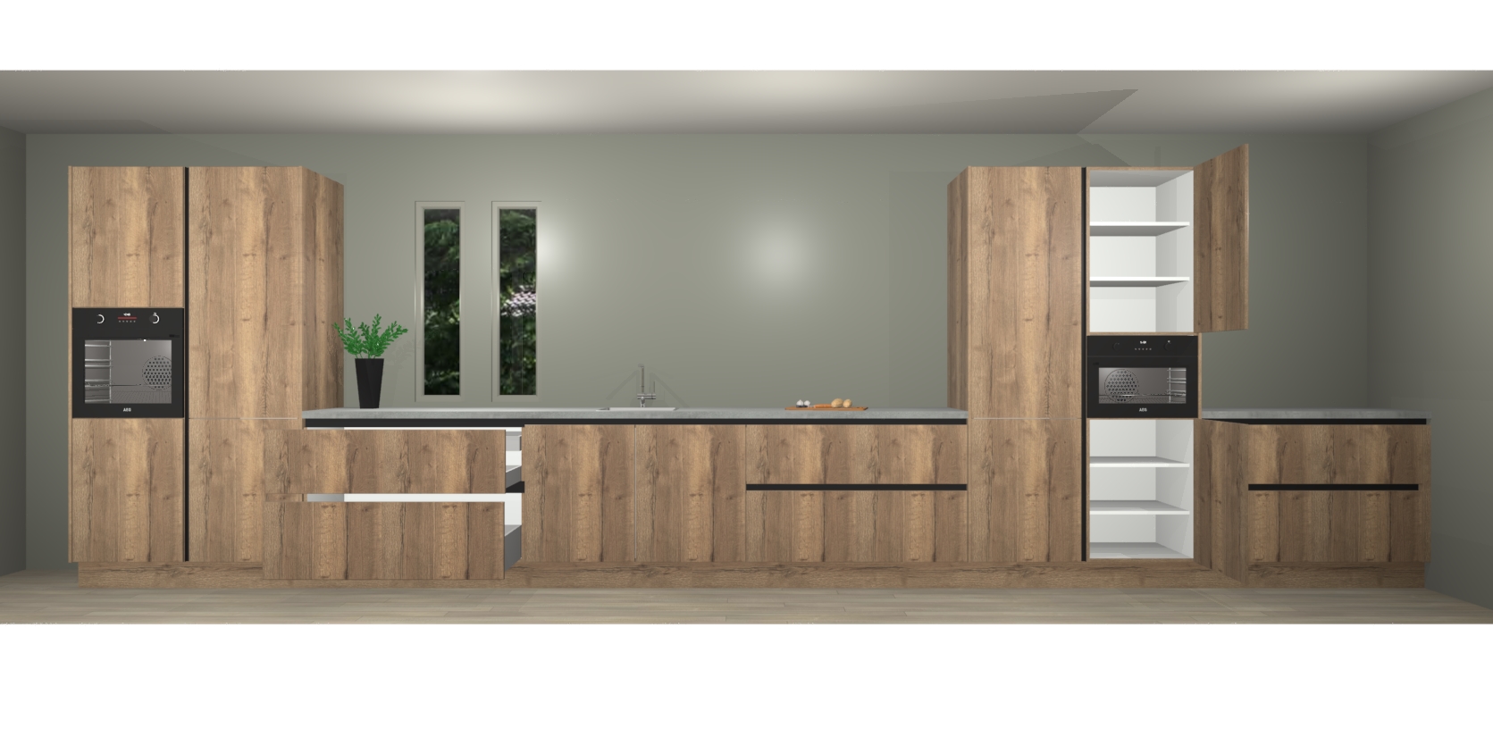 De perfecte toevoeging aan uw droomkeuken! De chocolade eiken greeploze keuken Krakor is een opmerkelijke en verfijnde keuken. Hij is ontworpen met moderne lijnen en tijdloze schoonheid die garant staan voor een luxe uitstraling. Deze uiterst functionele en mooie keuken heeft een reeks verbazingwekkende functies: de overvloedige opbergruimte bevat soft close deuren, terwijl vijf inbouwapparaten zijn inbegrepen in de vaste lage prijs. Beter nog, uw chocolade eiken greeploze keuken Krakor bestellen duurt slechts 7 weken met levering van voorgemonteerde kasten.