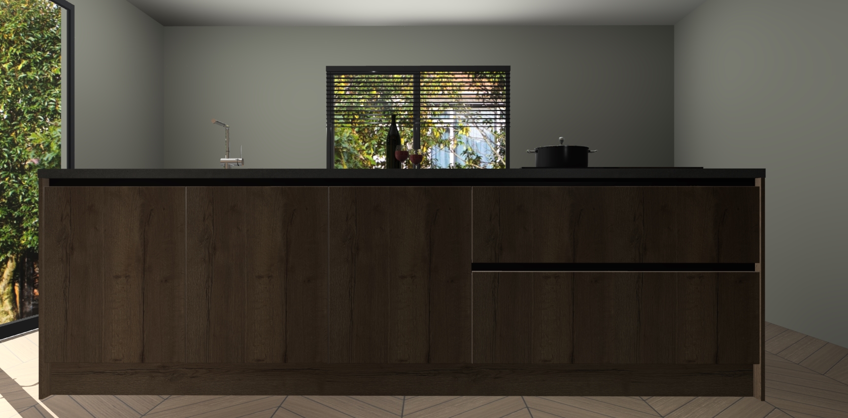 Sfeervol luxe met de Chocolade Eiken greeploze keuken Lodz! Reken op een moderne look die met zijn schitterende Chocolade Eiken kleur en het prachtige keukeneiland echt zal schitteren in uw keuken. Met veel verschillende berging opties zult u alles kunnen opbergen wat u nodig heeft in deze hoopvolle ruimte, waaronder ook soft-close vergrendeling.
