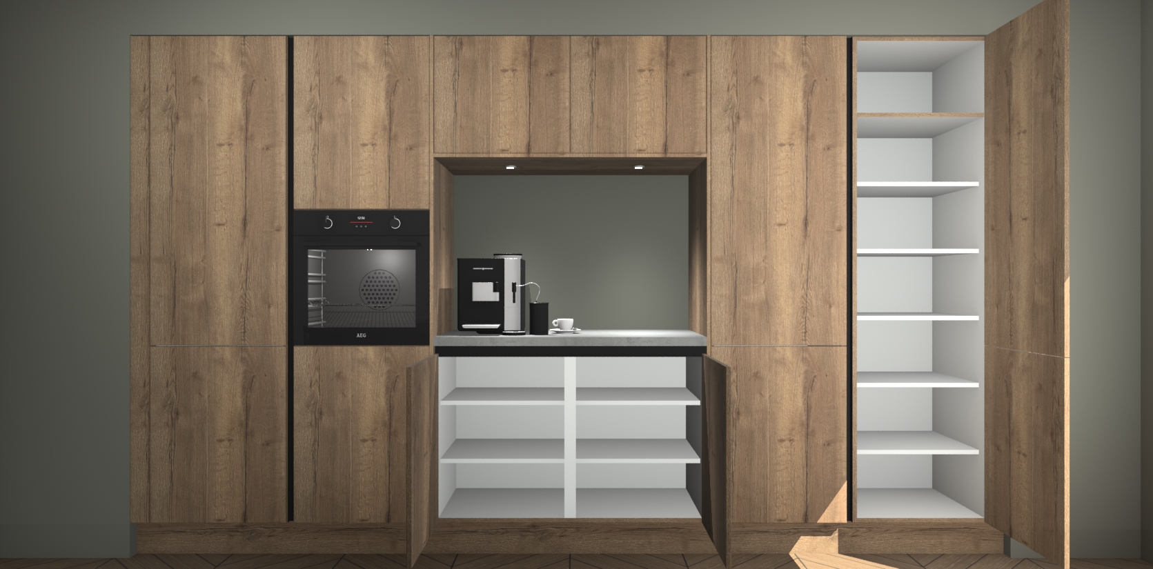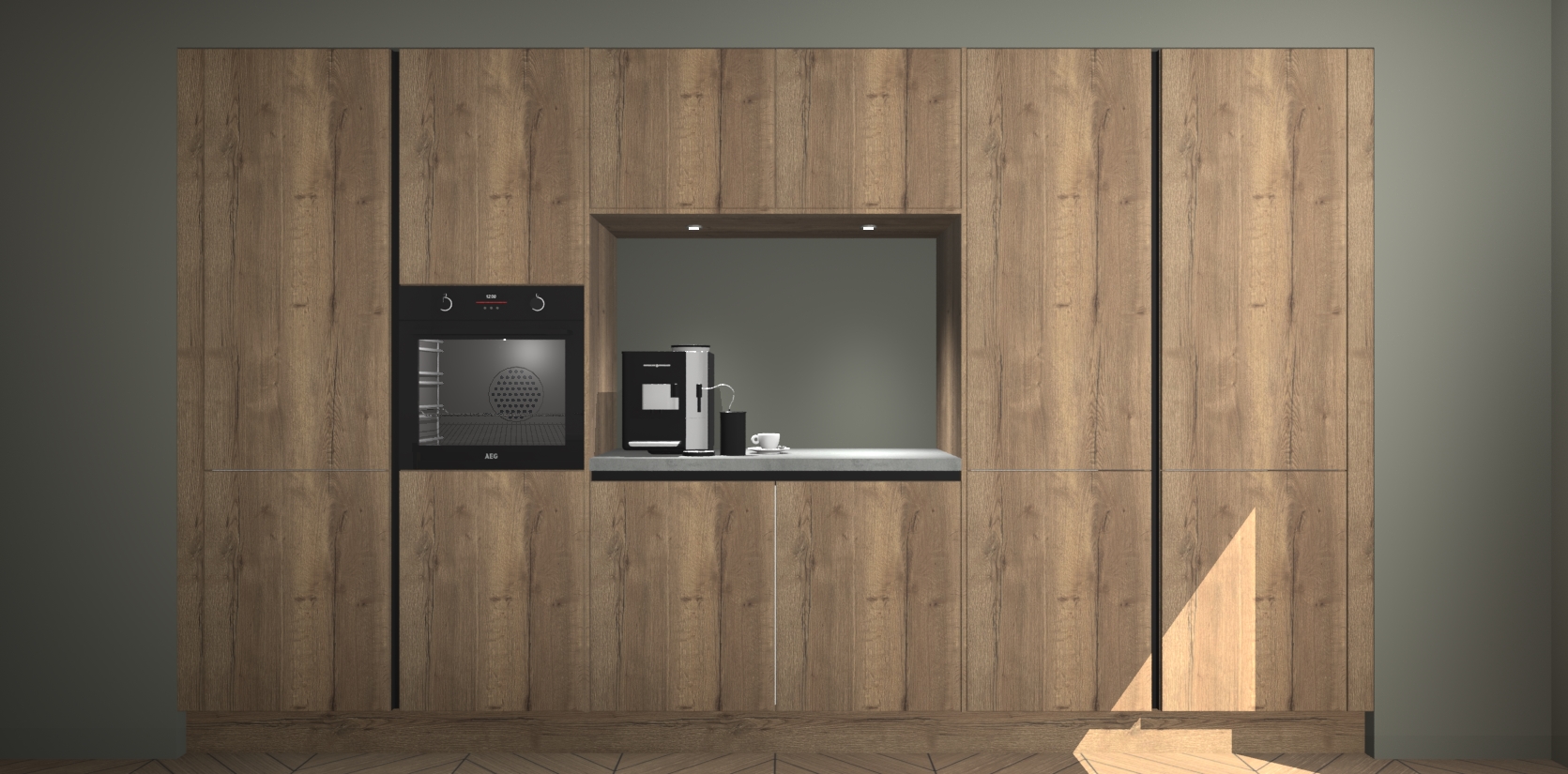 De Chocolade Eiken greeploze keuken Lodz wordt geleverd met een set van 5 ingebouwde apparaten: Een oven, inductiekookplaat, afzuigkap, vaatwasser en koelkast. Deze kunnen gemakkelijk worden opgewaardeerd naar AEG. Met de gegarandeerde lage prijs en de snelle levering van 7 weken kan u er op rekenen dat de Chocolade Eiken greeploze keuken Lodz zo snel mogelijk uw huis bereikt!